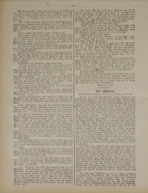 „Schön. Ich will also ganz kürzet, Prozc-ß machen und Ihnen unumwunden meinen Preis sagen: Ich erkläre mich bereit, Ihnen die vierzigtausend Mark vorzuschicßen. wenn Ihr Fräulein Tochter sich mit mir verlobt hat."