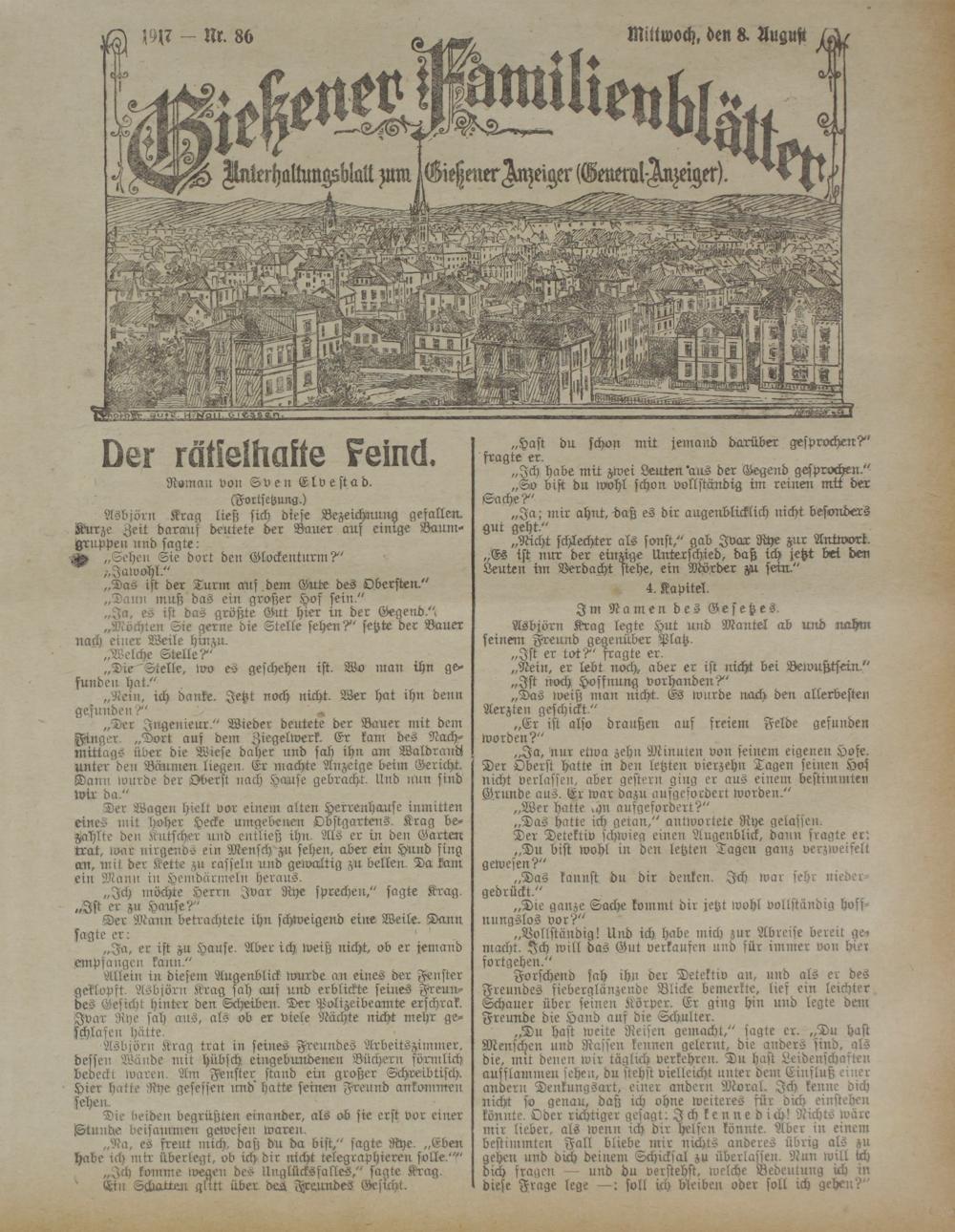 „Ja, nur etwa zehn Minuten von seinem eigenen Hofe. Der Oberst hatte in den letzten vierzehn Tagen seinen Hos nicht verlassen, aber gestern ging er aus einem bestimmten Grunde aus. Er war dazu ausgefordert worden.""