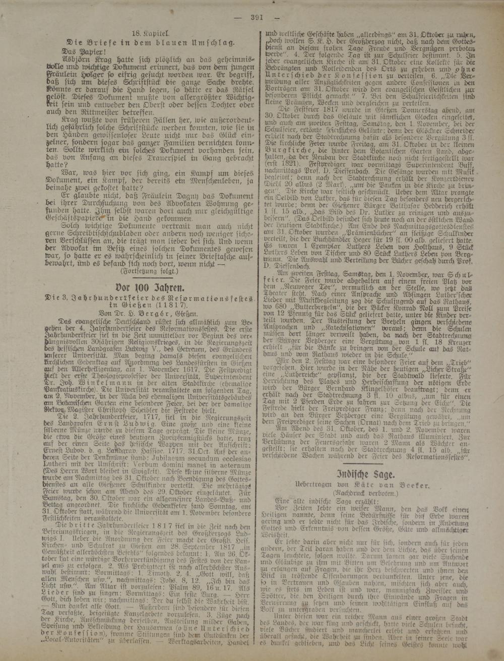 und ueltliche Geschäfte haben „allerdings" am 31. Oktober zu. ruhen, «doch wollen S. K. H. der Großherzog nicht, daß uack döm Gottesdienst an. diesem.' frohen Tage Freude und Vergnügen verboten werde". 4. Der folgende Tag ist zur Schulfeier bestimmt. 5. Jln wder evangelischen Kirche ist am! 31. Oktober eine Kollekte für die Bedrängten und Notleidenden des Otts zu Erheben und ohne Unterschied der Konfession zu verteile::. 6. „Die Verweisung aller Anzüglichkeiten gegen aridere Confesswnen in den Vorträgen am 31. Oktober wird .den evangelisckM: Geistlichen zur besonderen Pflicht genracht." 7. Bei den Schulfeierlichkeiten sind klerne Prämlsen, Wecken und dergleichen zu verteilen.