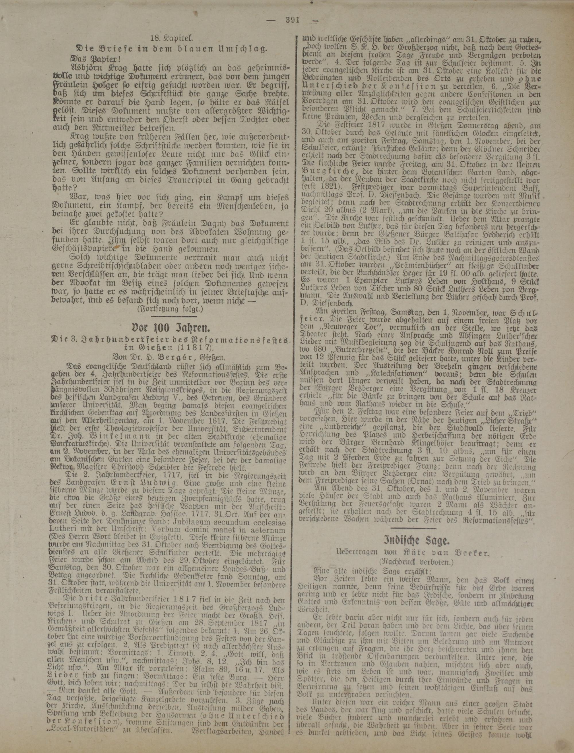 Das evangelische Deütschla:ü> rüstet sich allmählich zum Be« gehe:: der 4. Jahrhundertfeier des' Reformatrons festes. Tie erste Jahrhundertfeier fiel in die Zeit immittelbar vor Beginn des verhängnisvollen 30jährigen Religiouskrieges, in die Negierungszeit des hessischer: Landgrafer: Ludwig V., des Getreuen, des Gründers Unserer Universität. .Man beging damals diesen evangelischer« krchlich-en Gedenktag ans Anordnung des Landesfürsten in Gieße:: aus den Mlerheilignttag, an: 1. Mvember 1617. Die Festpcedigt hielt der erste Theologieprofessor der Universität, Srcherintendeut Dr. Joh. Winkel mann in der alter: Stadtkirche (ehemalige Pankvaturskirche). Tie Universität veranstaltete am folgenden Tag, am 9. Mvember, in der Mcka des ehemaligen Uuiversitätsgebäudes vn: Botanischen Gatter: eine besondere Feier, bei der der damalige Rektor. Magister Christoph Scheibler die Festrede hielt.