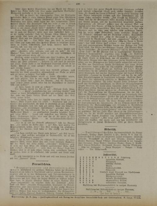 Auflösung des Ergänzungsrätsels in voriger Nummer.»