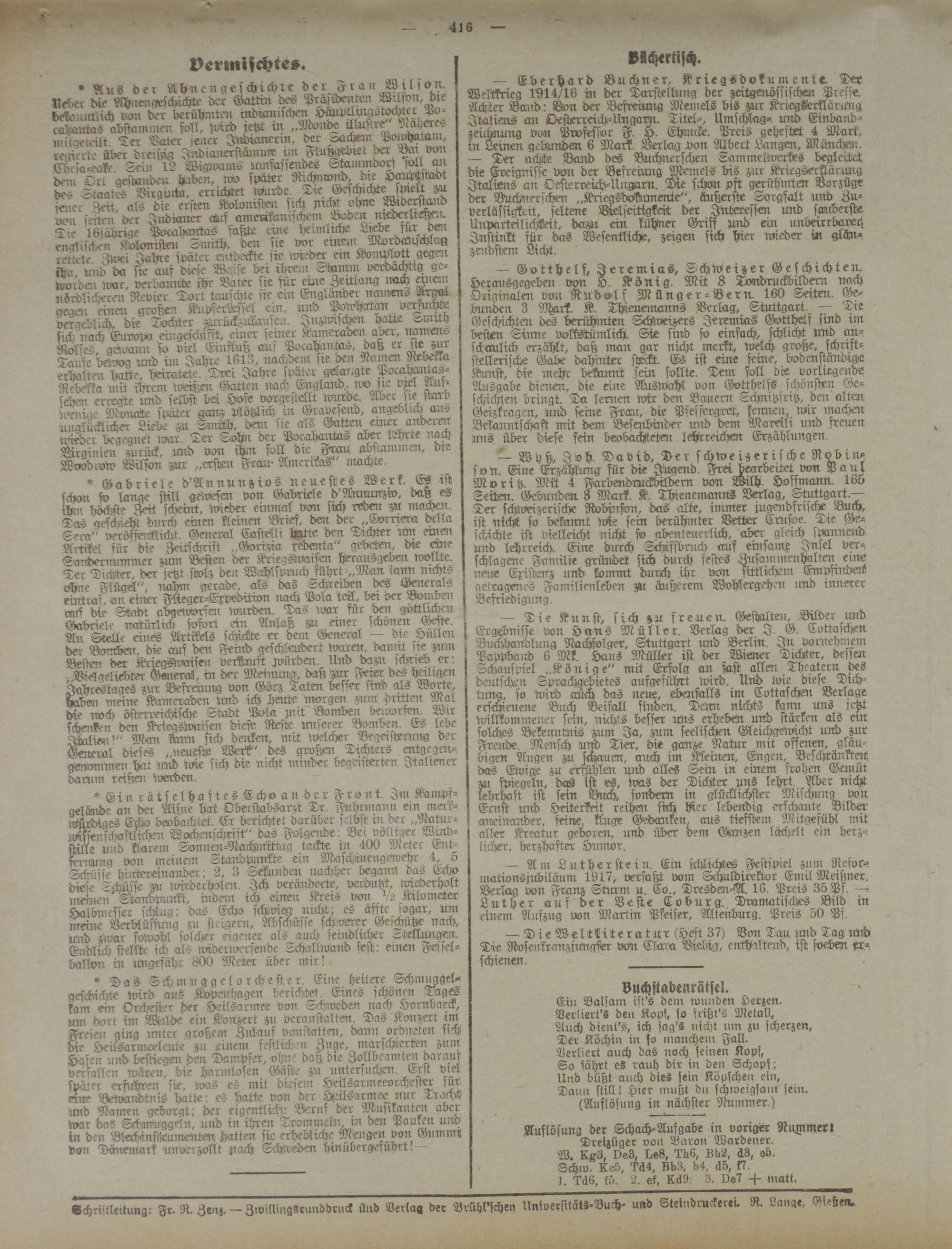 Schrntlettung: Fr. R. Zenz. — ZwillingSrunddruck ünd Verlag der Brühl'schen UniversitätS-Buch- und Steiiwruckerei. R. Lange, Gießen.