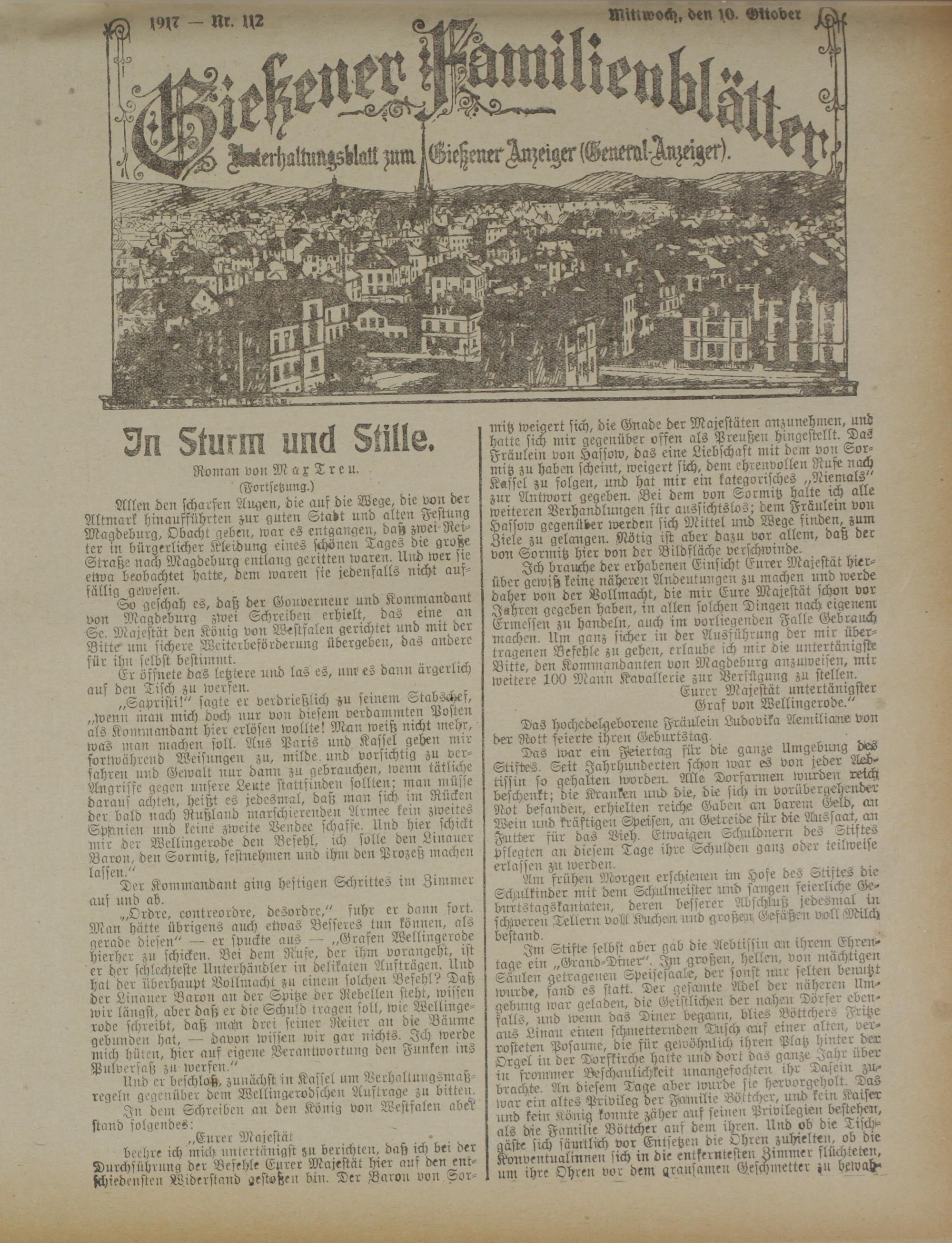 SvÄchah es, daß der Gouverneur und Kommandant von Magdeburg zwei Schreiben erhielt, das eine an Se. Majestät den König von Westfalen geruhtet und mit der Bitte- um sichere Weiterbeförderung übergeben, das andere