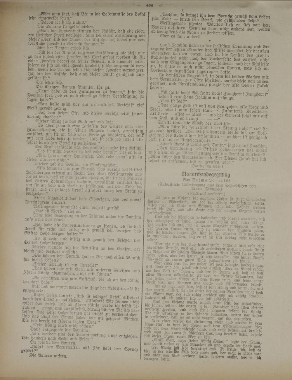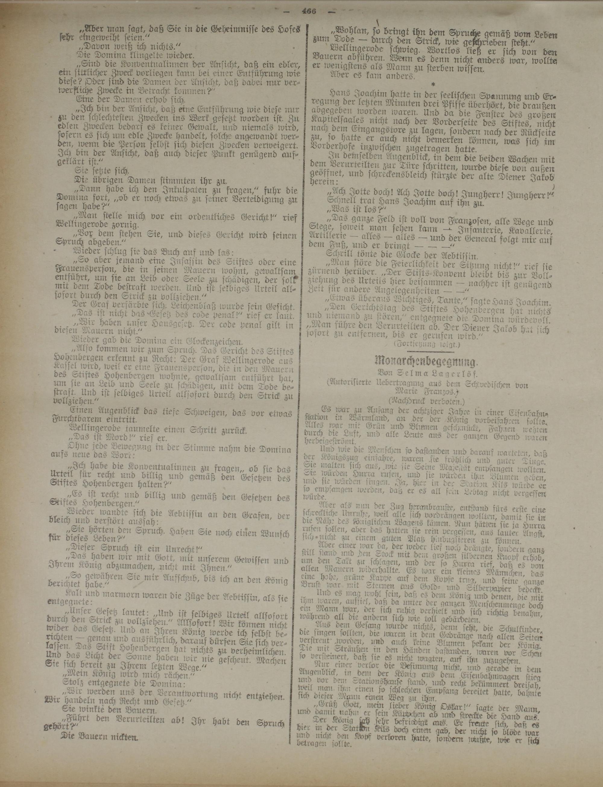 ^ „Also kommen wir zum Spruch. Das Gericht des Stiftes Hoyeubergeu erkennt zu Recht: Der Graf Wellingerode aus ^aiiei wird, wer! er eure Frauensperson, die in den Mauern des Stiftes Hohenbergen wohnte, gewaltsam critführt bat.