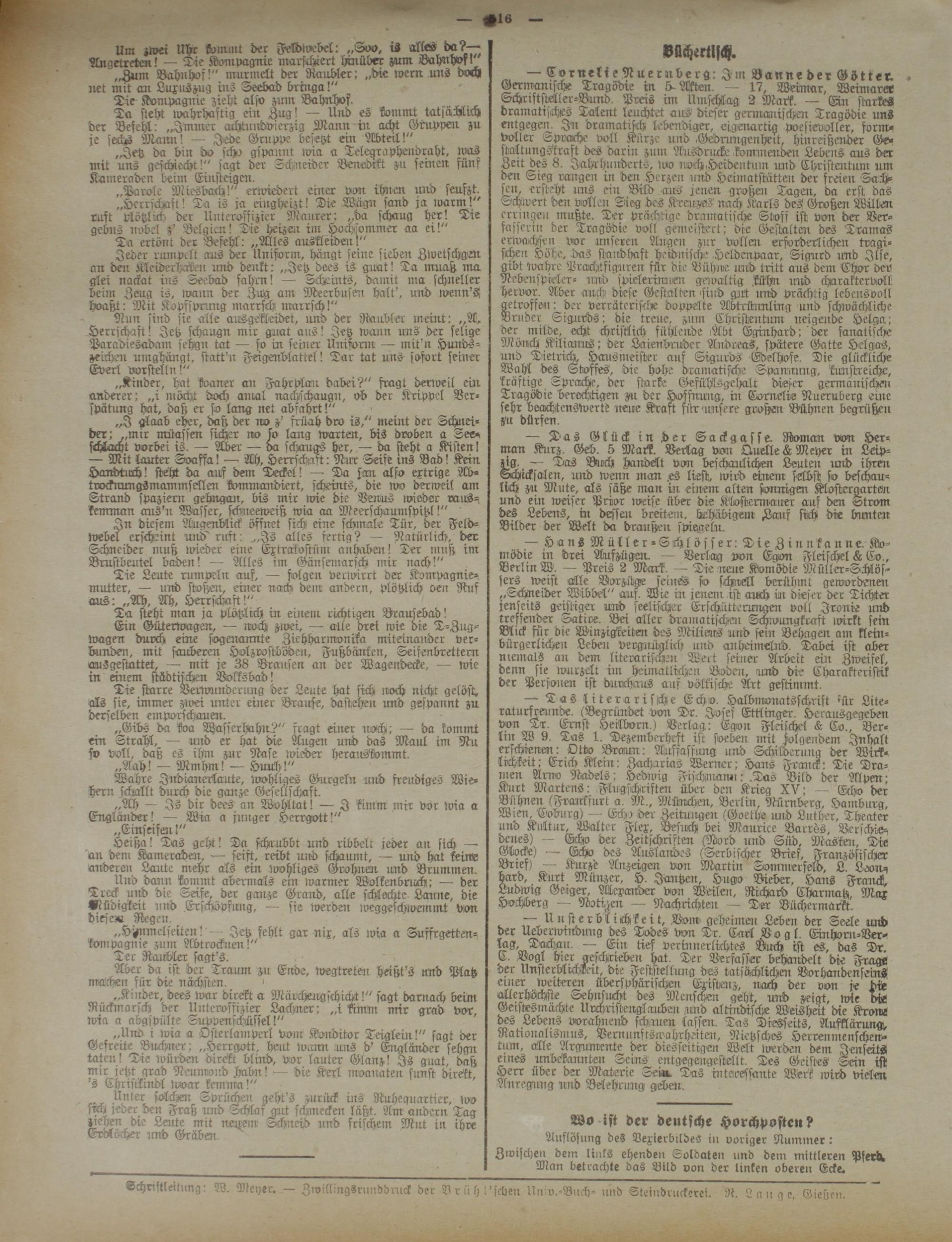 „Kiirder, dees nmr direkt a Märchntgschicht!" sagt darnach beim Rückmarsch der Unteroffizier Lachner; „i kimm mir grad vor, wia a abgspülte Suppenschüssel!"