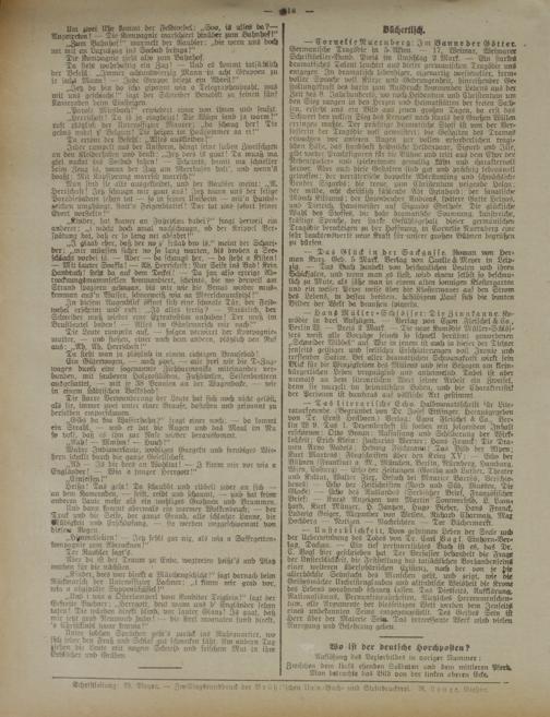 — Das Glück in der Sackgasse. Roman von Her- man Kurz. Geb. 5 Mapk. Verlag von Quelle L Meyer in Leipzig. — Das Buch handelt von beschau.lichen Leuten und ihren Schicksalen, und wenn man.es liest, wird einem selbst so beschaulich zu Mute, als säße man in einem alten sonnigen Klostergarten und ein weiser Prior weise über die Klosterm-auer ans den Strom des Lebens, in dessen brettern, behäbigem Hanf sich die bimten Bilder der Welt da draußen spiegeln.