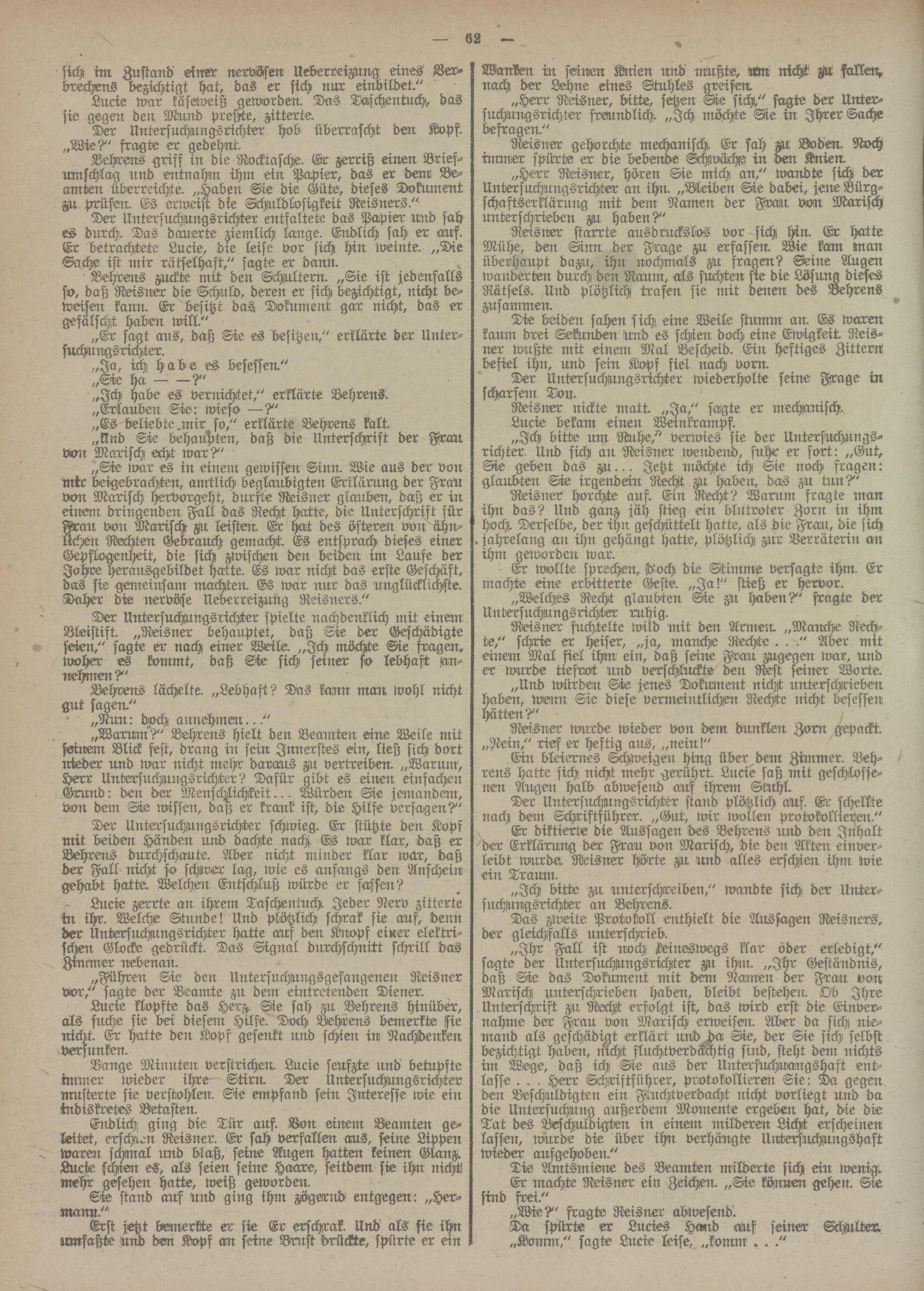 „Herr Reisner, hören Sie mich an," wandte sich der Untersuchungsrichter an ihn. „Bleiben Sie dabei, jene Bürgschaftserklärung mit dem Namen der Fvar: von Marisch unterschrieben zu haben?"