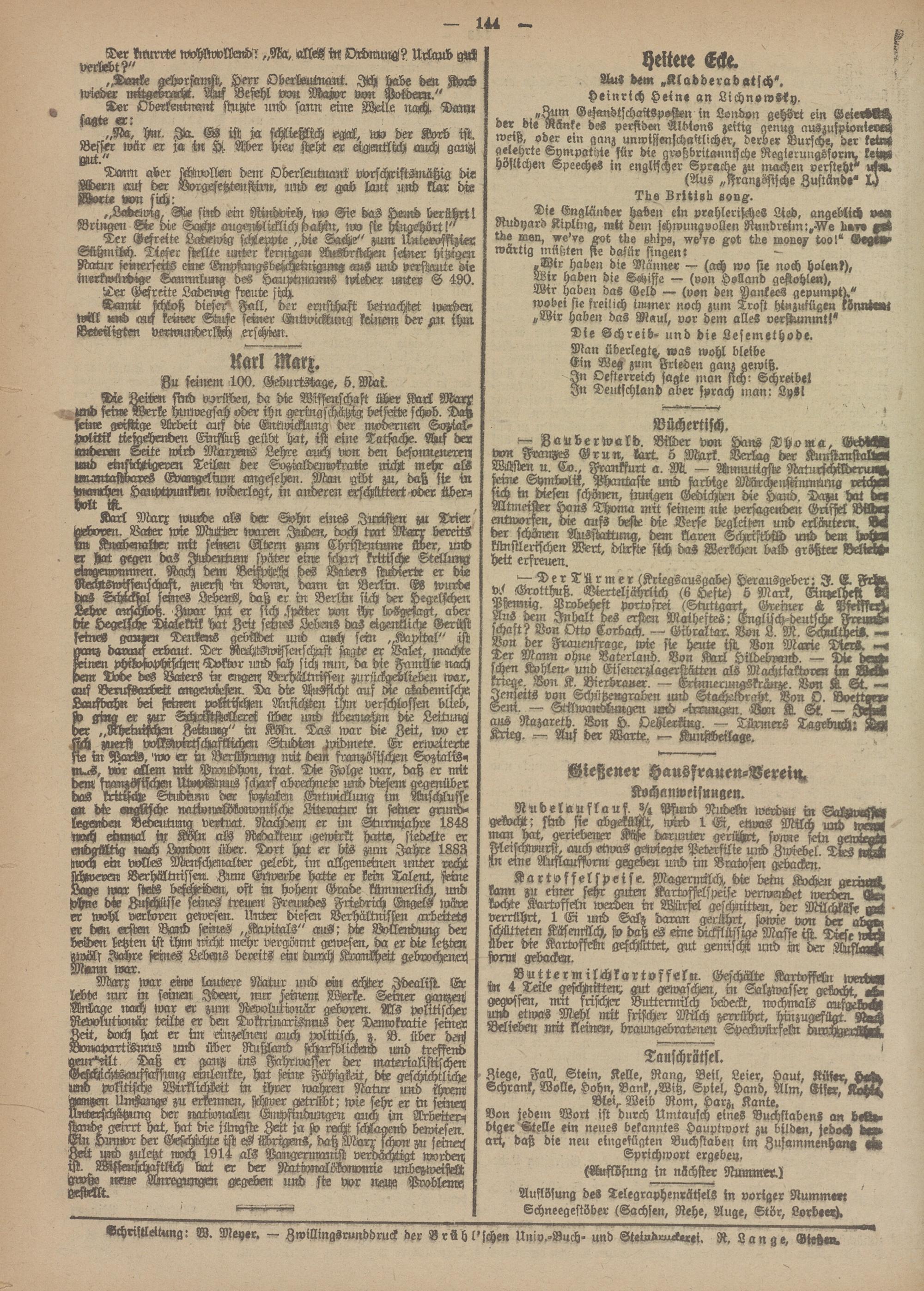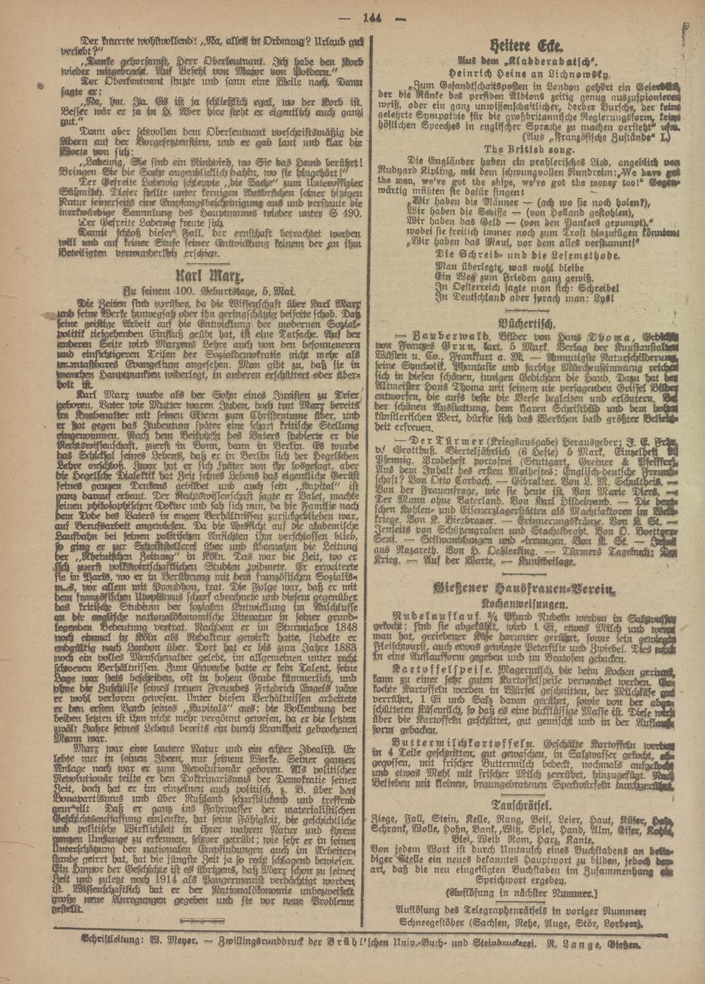 geirrt hat, hat die jiingstx Zeit ja st recht schlagend bewiesen. Ein Humor der Geschichte ist eg WriMrs, daß Marx schon zu seine« Zeit Md zuletzt noch 1914 als Pangermanist verdächtigt worden; rst MssenschaMch bat er der NätwnalükonomiL unbezweistL MVw NN« Anregungen gegeben und sie vor im& Probleme; gestellt.