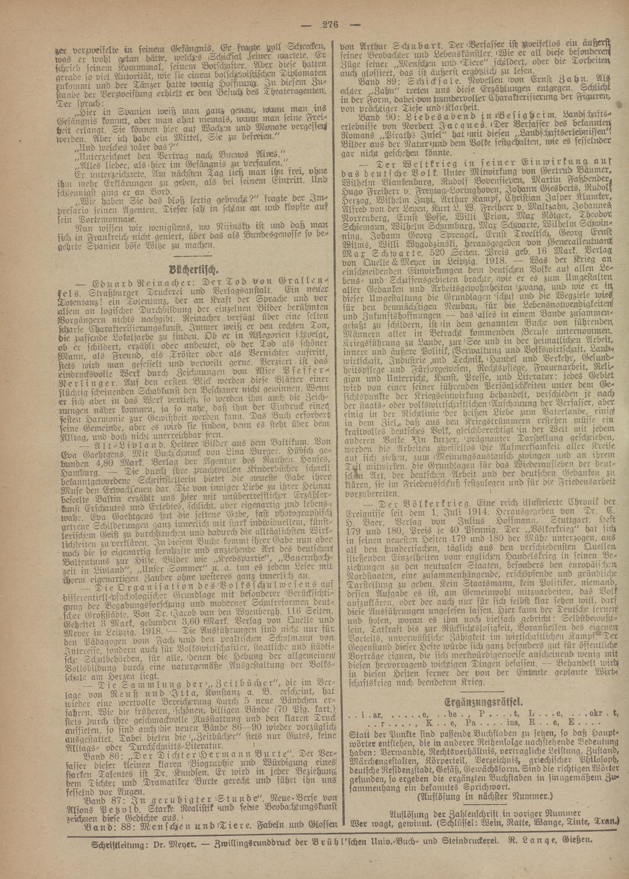 Schrtstleitung: vr. Meyer. - ZwiNingsrunddruck der Brtthl'ichen Univ.-Buch- und Steindruckerei. R. Lange, Gießen.