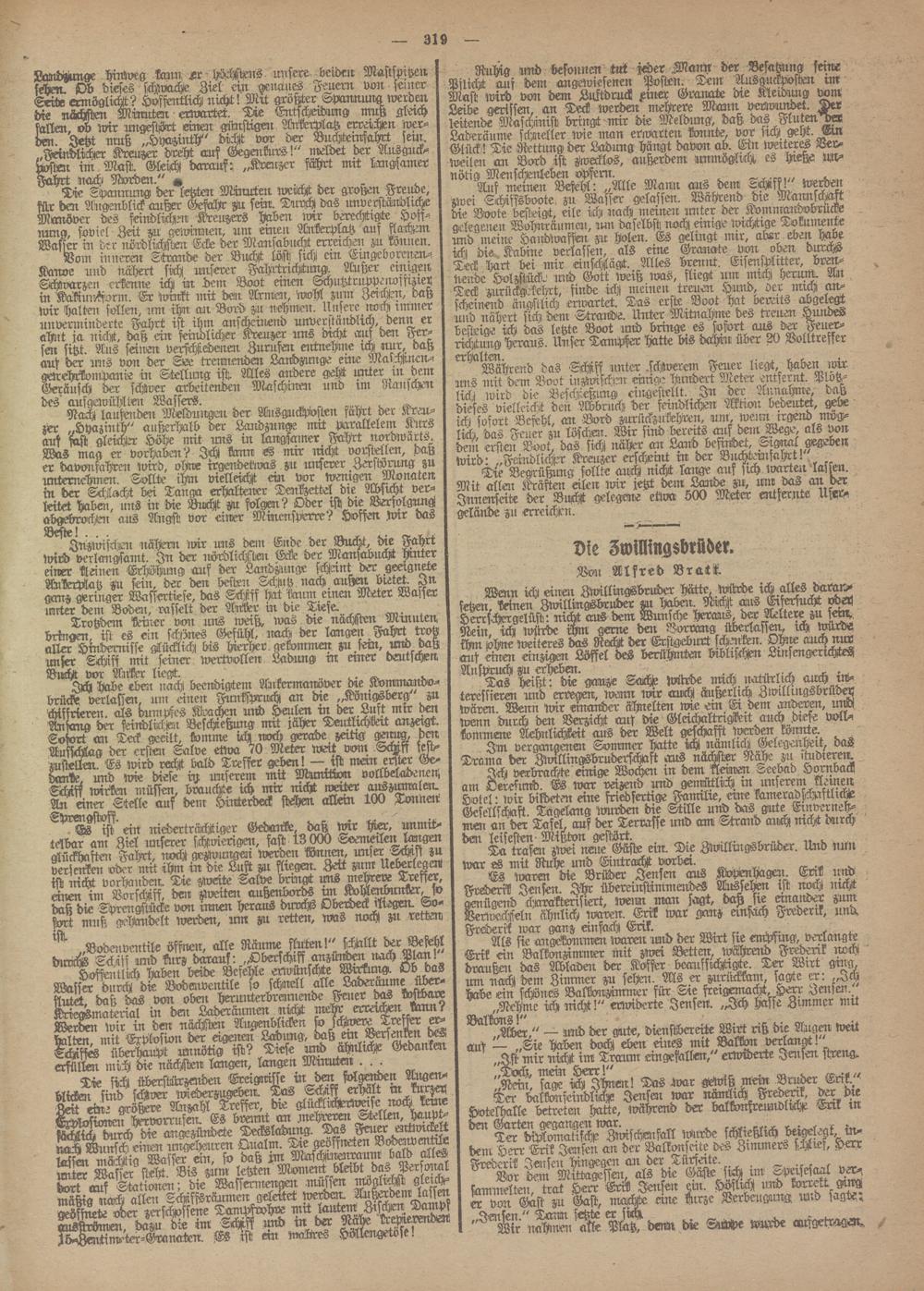 S ~ len. Es wird rocht bald Treffer geben!— ist mern erster Ge- urck wie diese iß unserem mit Munition vollbeladenen, Schiff wiiken rnüssen, brauchte ich mir nicht weiter anszumalmc. Air einer Stelle auf dem Hinterdecke stchen allem 100 Tonneir
