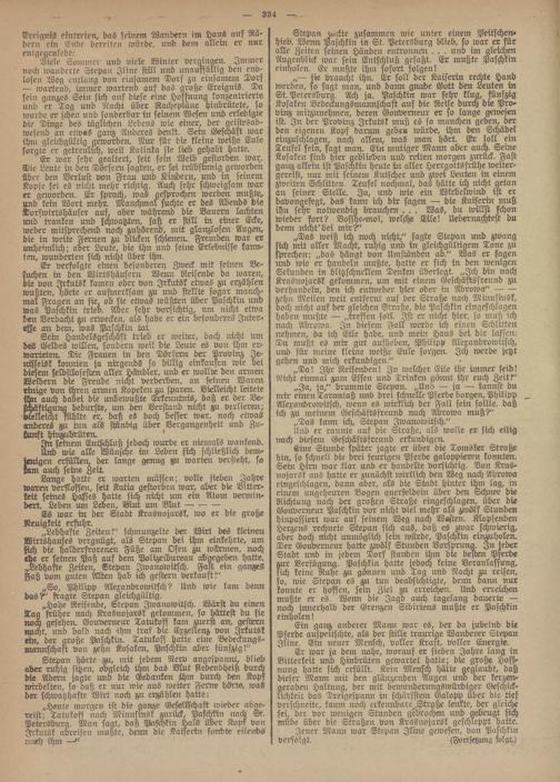 „Hohe Reisende, Stepan Jwanowitsch. Wärst du einen Lag früher nach Krasnojarsk gekommen, so hättest du sie Noch gesehen. Gouverneur Tatukosf kam zuerst an, gestern nacht, und bald nach ihn: traf die Exzellenz von Irkutsk rin, der große Paschkin. Tatukoff hatte eine Bedeckungsmannschaft von zehn Kosaken, Paschkin aber fünfzig!"