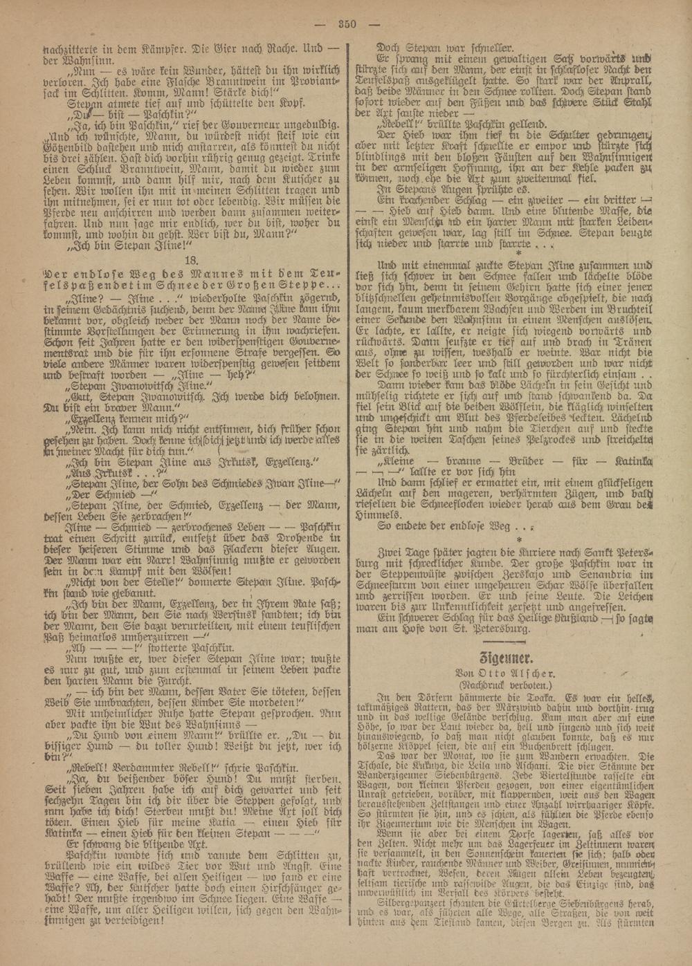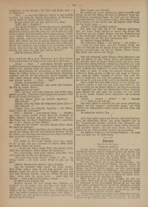 „Ja, du beißender böser Hmid! Du mußt sterben. Seit sieben Jahren habe ich aus dich gewartet und seit sechzehn Tagen bin ich dir über die Stepper: gefolgt, und! zmn hübe ich dich! Sterben nmßt du! Meine Axt soll dich töten. Einen Hieb für meine Kätia — einen Hieb für Kätinka — einen Hieb für der: kleinen Stepan —"