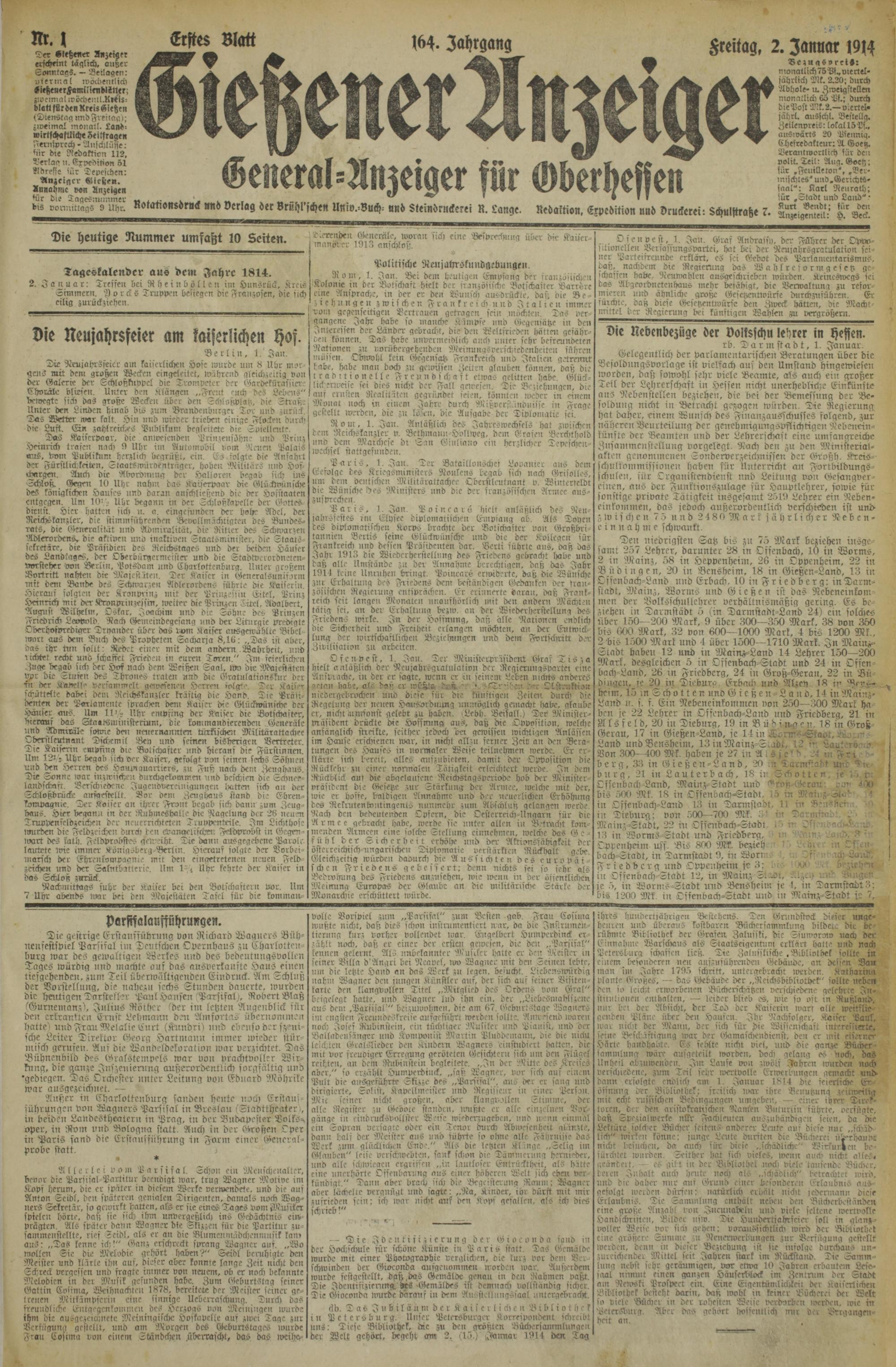 Ter «teßener Anzeiger erschein! täglich, außer Sonntaas. — Beilagen: viermal wöchentlich