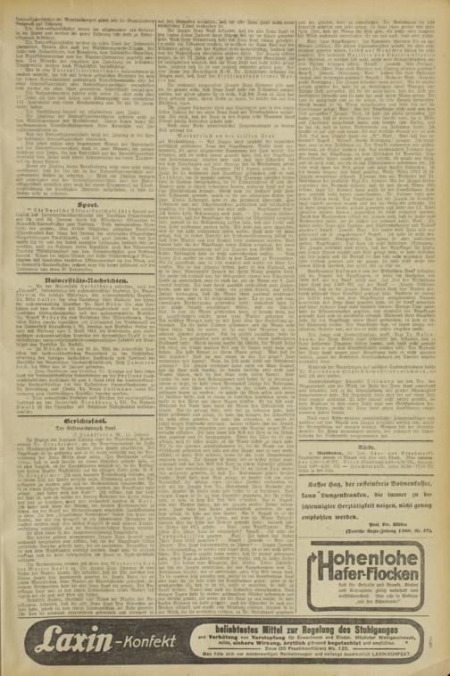 Nach einer Reihe weiterer unwesentlicher Zeugmaussagen unli »achdcm auf eine 'Anzahl von Zeugen verzichtet worden war, wurde die Verhandlung aut morgen vertagt. Morgen soll der Gerschis- chemilcr Tr. Povv vernomnien werden, der seinerzeit die Unter suchung der Leichenreste vorgeuomiiicn hat.
