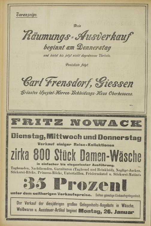 Der Verkauf der diesjährigen großen Gelegenheits-Angebote in Wäsche, Weißwaren u. Aussteuer-Artikel beginnt Montag, 26. Januar