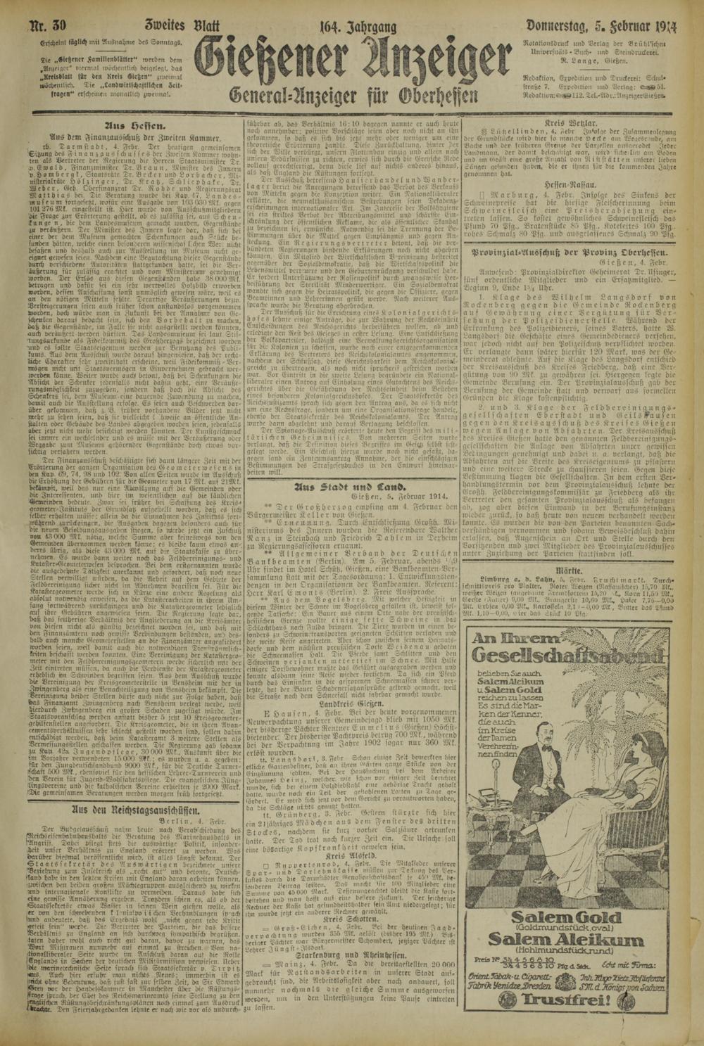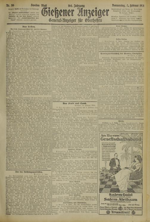 Redaktion, Expedition und Druckerei: Schul« straße 7. Expedition und Verlag: ^^51. Redatlion:e^A112. Tel.-Adr.:AnzergerGietzen.