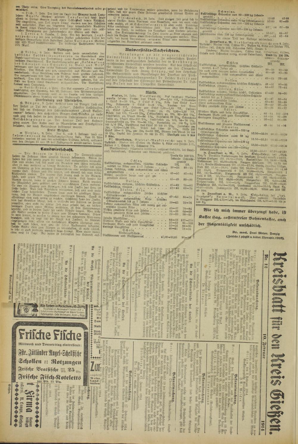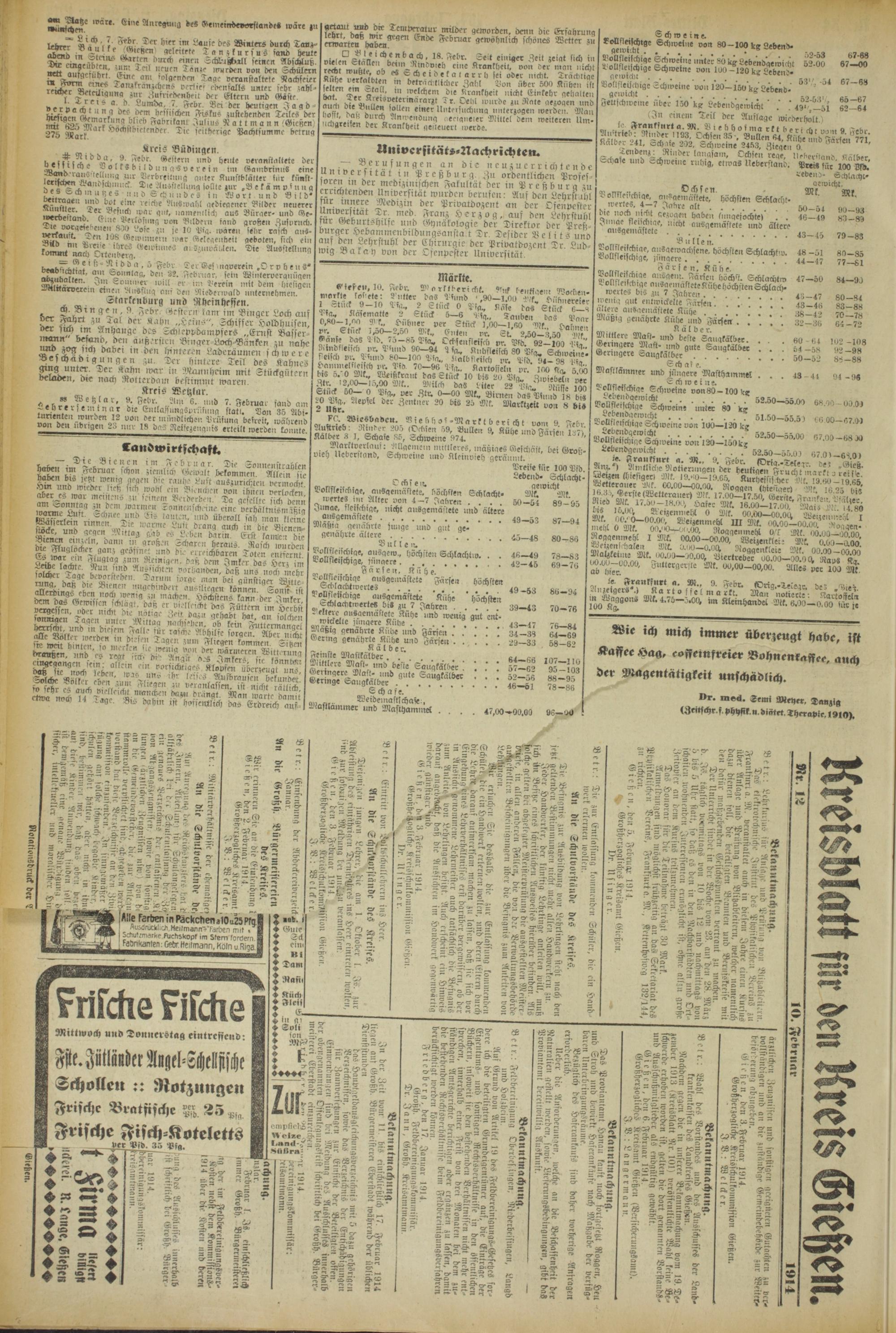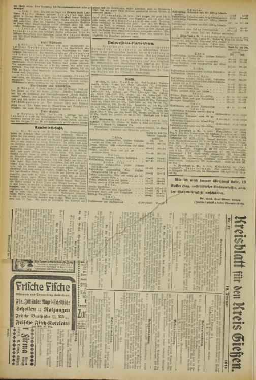 Giesen, 10. Febr. M o rktberi ckik. tz'uk l-enkiaem Worben- umrkie lastete: 9 »Iler das Blund ',90—1.09 Alk, Hühnereier