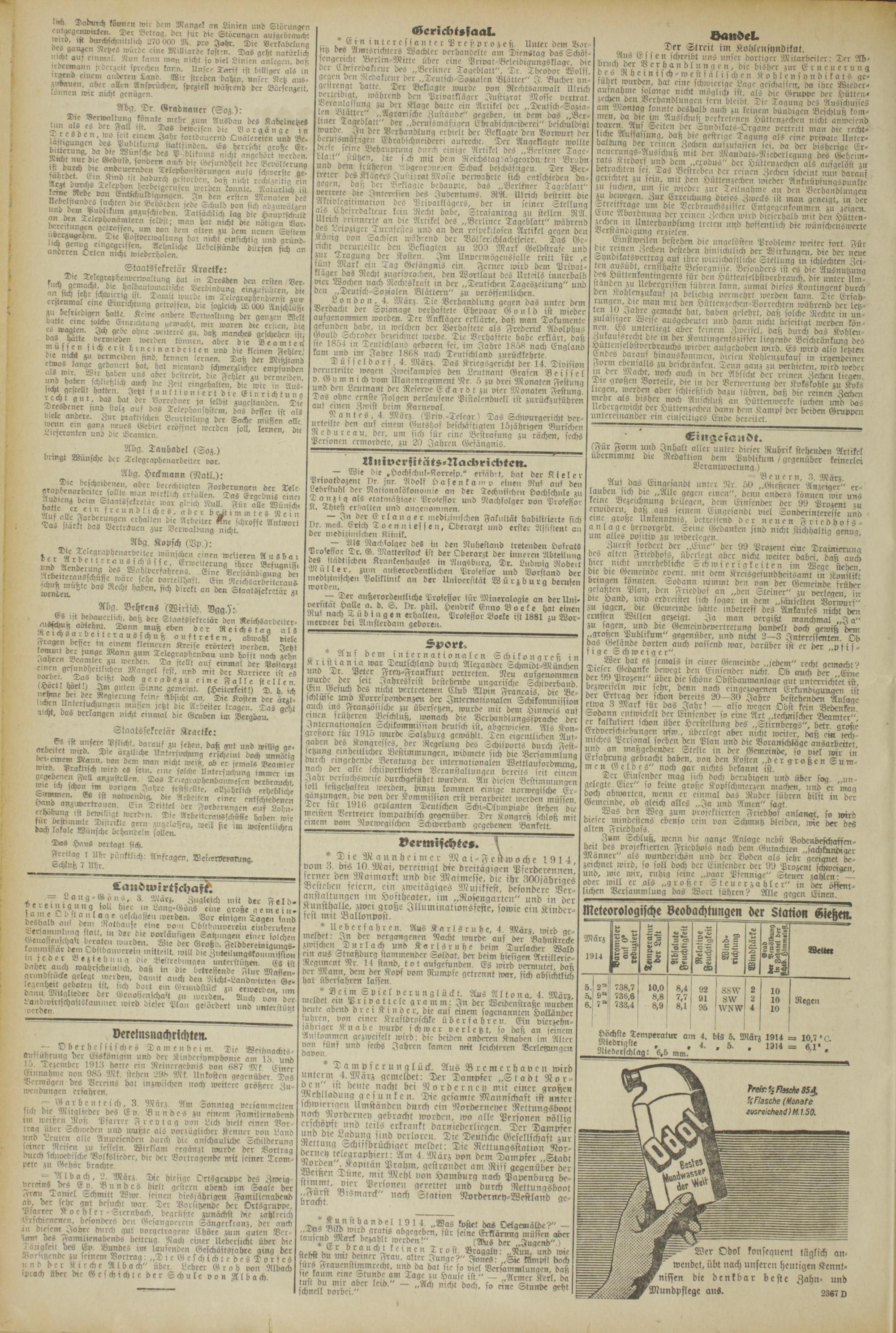 Höchste Temperatur am 4, bis 5. März 1914 = 10,7 "c. Niedrigste , , 4. , 5. , 1314 = 6,1* .