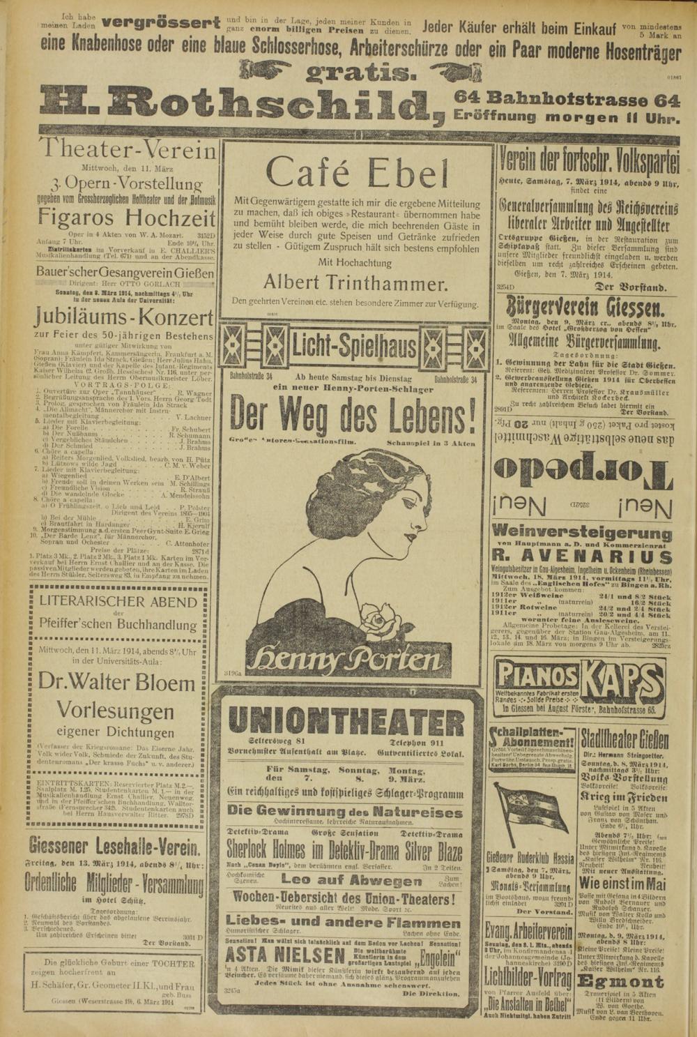 Heute, Samstag. 7. Märj 1914, abends 9 Uhr,