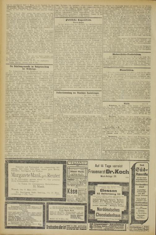Die Bcerdigunn findet Samsiag, den 21 Marz nachm 3 110t Man. [ ni '