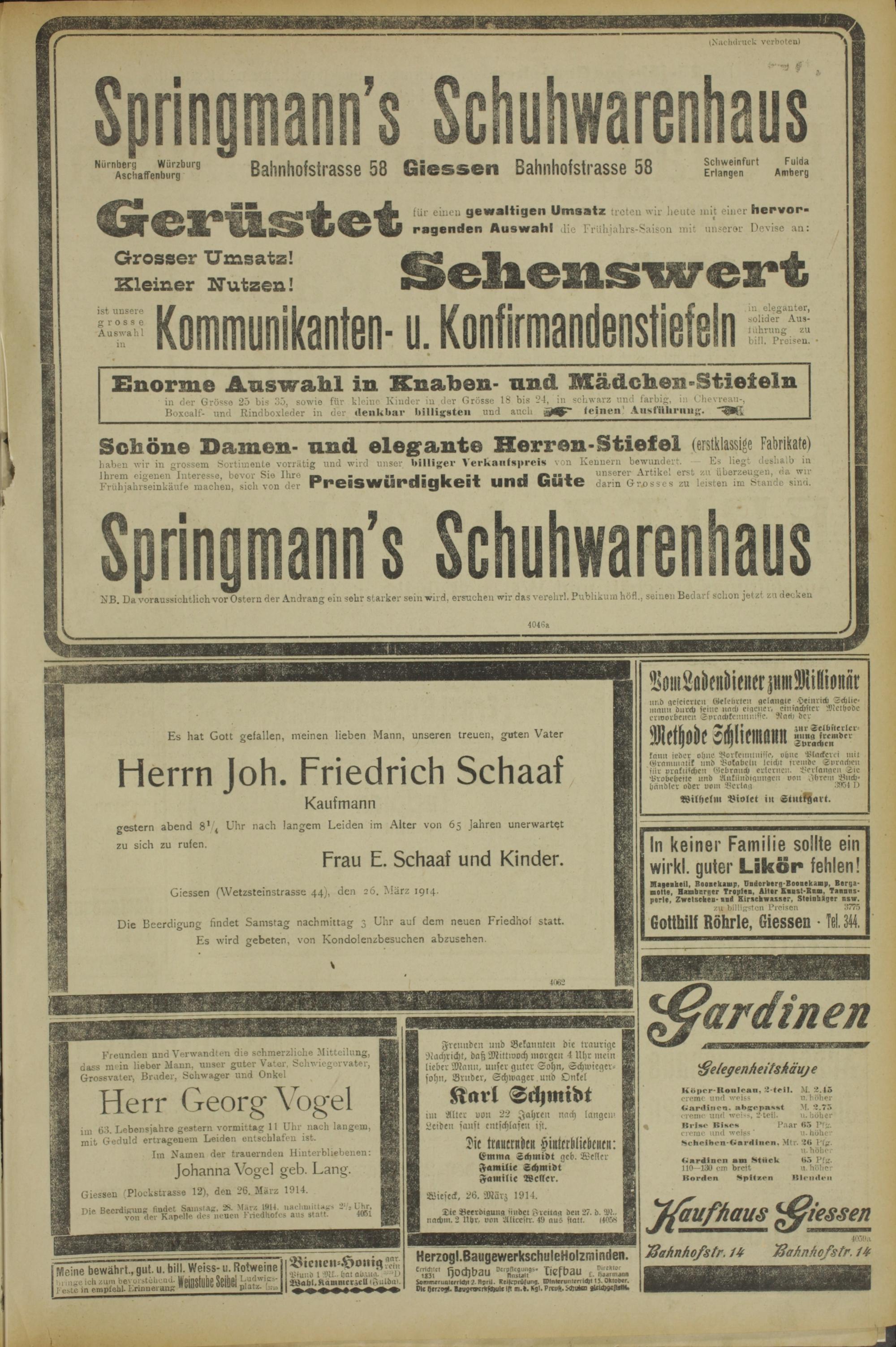Giessen (Plockstrasse 12), den 26. März 1914.