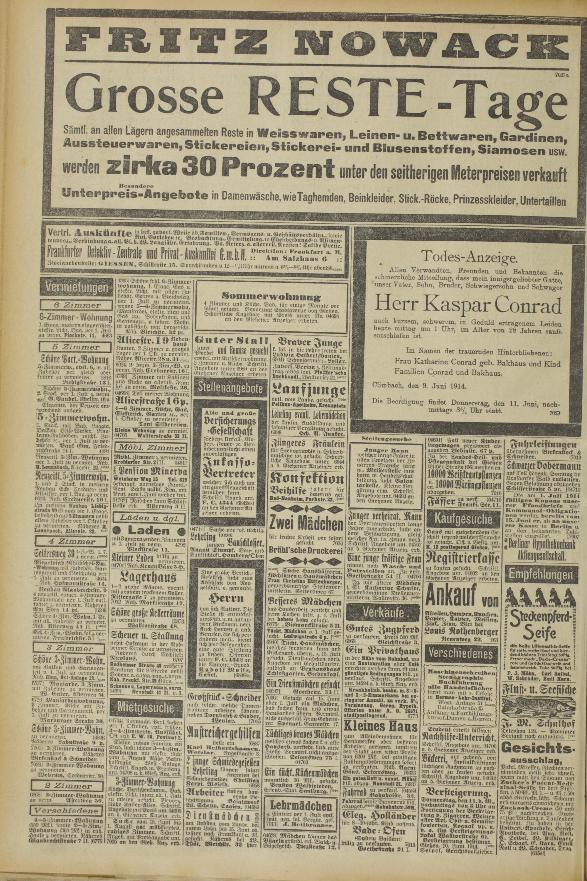 Die Beerdigung findet Donnerstag, den 11. Juni, nachmittags 3*/j Uhr statt. 7023