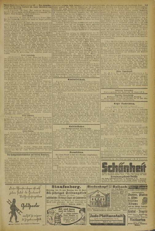 "A Alsfeld, 18. Juni. In Grebenau ist das Söhn- chen des Landwirts Jakob in der durch den Regen gefüllten Mistgrub« ertrunken.