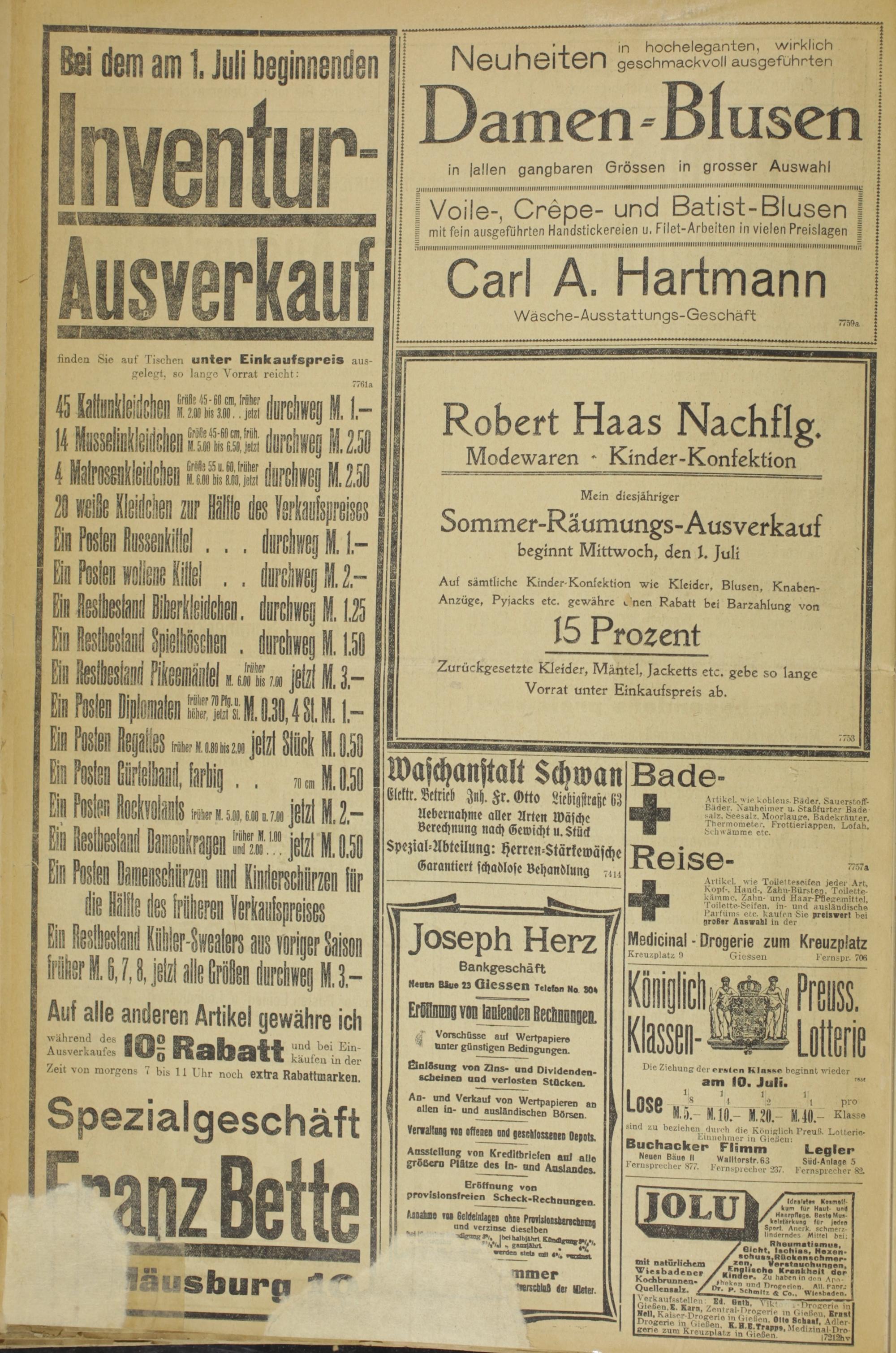 Kreuzplatz 9 Giessen Fernspr. 706