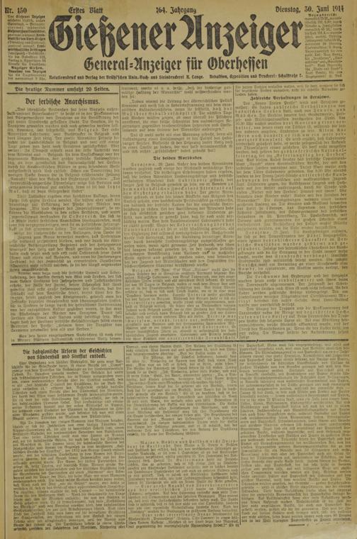 „Das scheußliche Verbrechen hat seine Wurzeln außerhalb unseres Vaterlandes !" so heißt es in der Proklamation des Bürgermeisters von Serajetvo an die Bevölkerung der jetzt unter Staudrecht gestellten Stadt. Die Bomben, die in Serajewo geworfen wurden und noch geworfen werden foll ten, stammen, wie festgestellt, aus Belgrad. Der erste Attentäter Cabrinovic n>ar Buchdrucker in Belgrad und dort längere Zeit tätig. Der zweite Attentäter Princip besuchte die Handelsschule in Belgrad und war erst einige Tage zuvor von dort nach Serajewo zurückgekehrt. Aber weiter; In Ofenpest erhielt man die erste Nachricht von dem«Attentat aus —■ Belgrad. An dem Unglückstage war der sogenannte Vidovdan, der größte serbische Nationalfeiertag, an dem gelvöhnlich das iliatioiurlgefühl der Serben durch die chauvinistischen Blätter in ganz besonderer Weise aufgestachelt wird. Und endlich; Schon am Donnerstag der vorigen Woche konnte die in Belgrad erscheinende Zeitung „Nowosti" über den Besuch des Erzherzogs schreiben; „Ter sterreichisch-ungarische Thronfolger möge sich Bosnien und .'Herzegowina diesmal gut ansehen, denn es sei das letzte Mal. daß er dazu Gelegenheit findet".