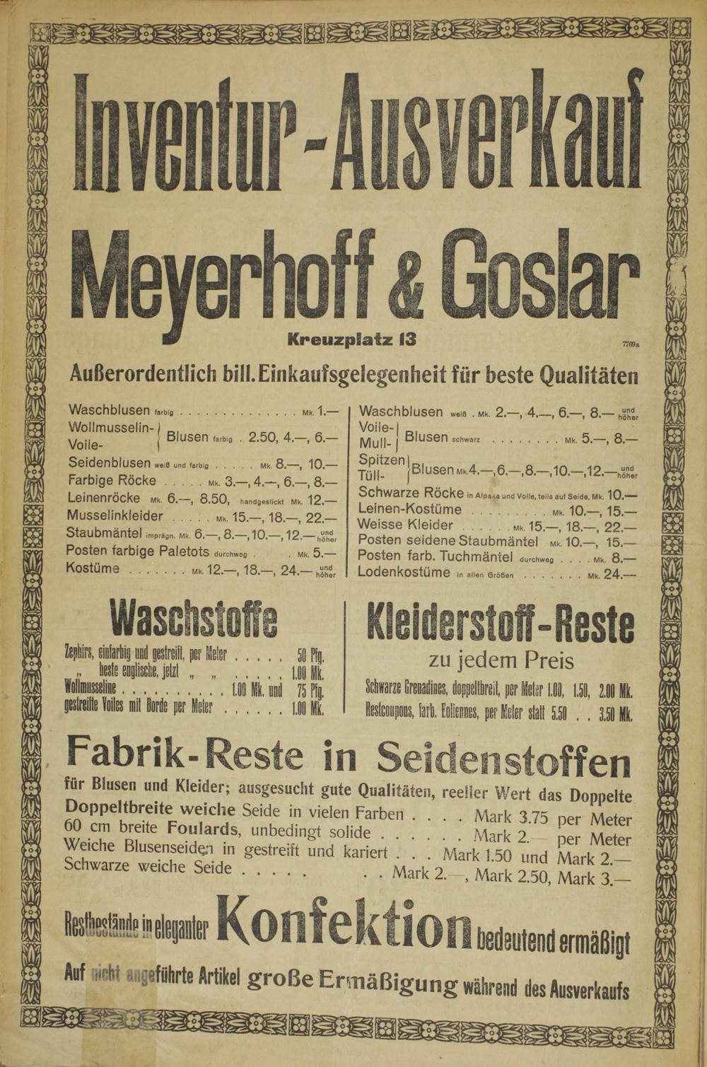 für Blusen und Kleider; ausgesucht gute Qualitäten, reeller Wert das Doppelte