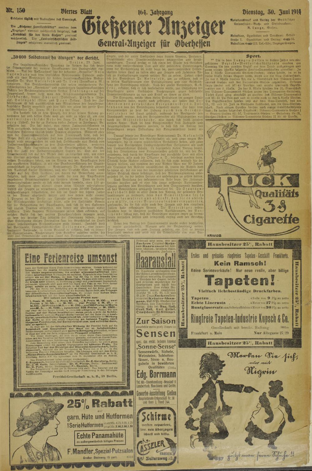 Dienstag. 30. Zuni!914