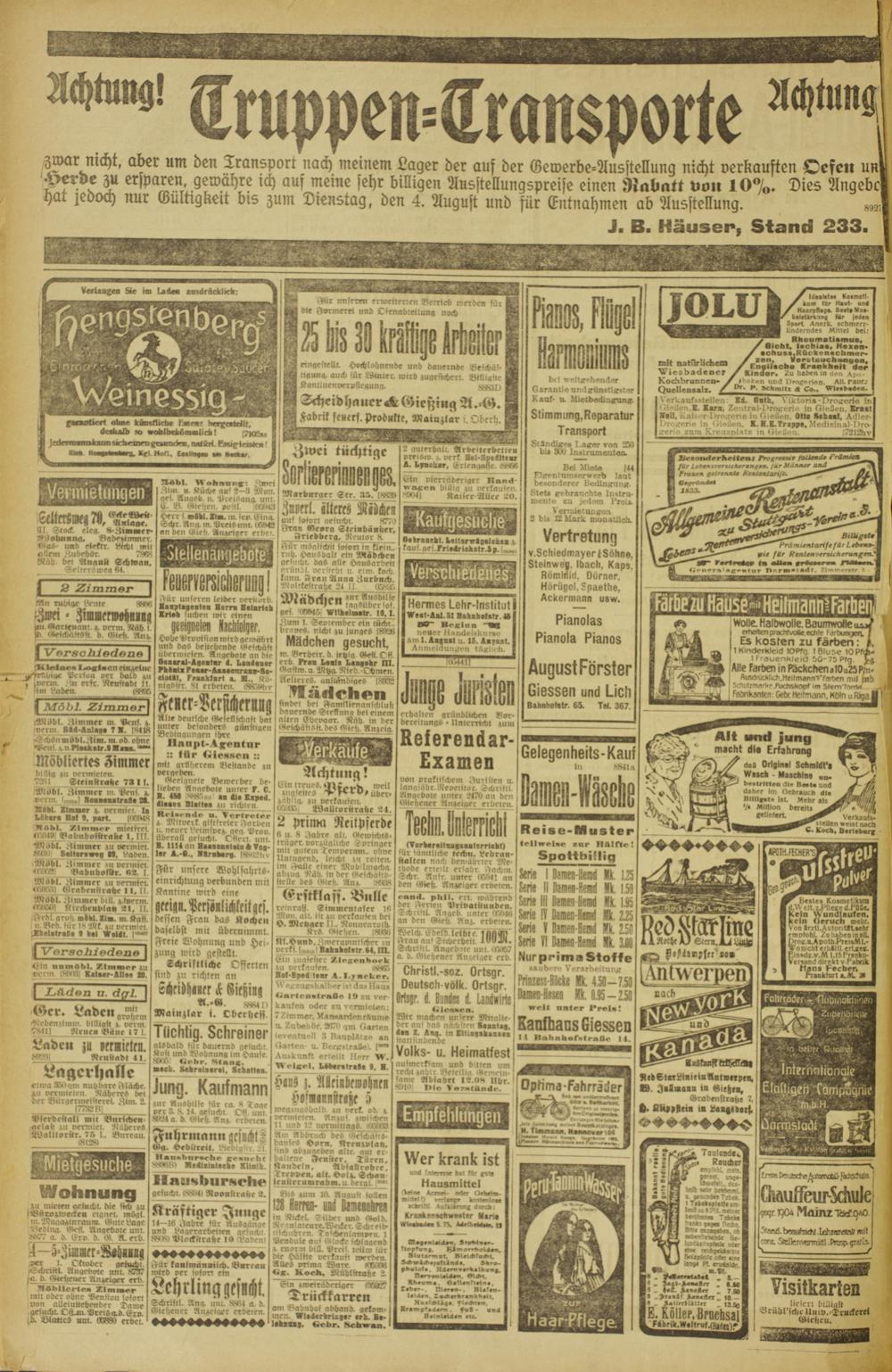 TMbl. AA i>hnnn(: Bwei Bim u. stäche atil 2—3 Mon. ges. Angeh. n. Preioana. uni. E. 8. Giehen, »oitl. 0BX3 Herr ! m«bl. lim. nt. ’ir Gnu». 4chr Ang.m.Preidunt. i6!*dS an den liliek. AnAetger erdet.