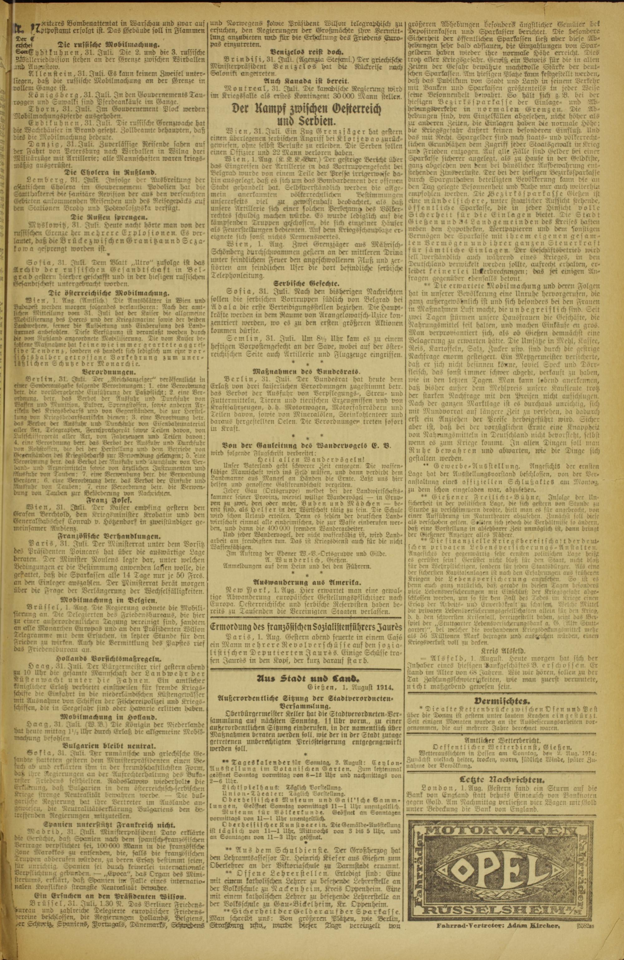 Gießen, 1. August 1914.