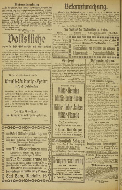 Gemäß dem Reichsgeseire vom 5. August ds. Js. ist in Gießen für den