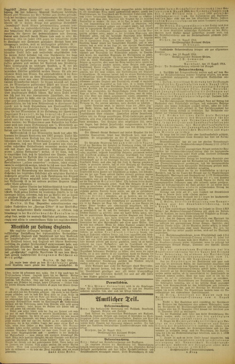 Gießen, den 13. August 1914.