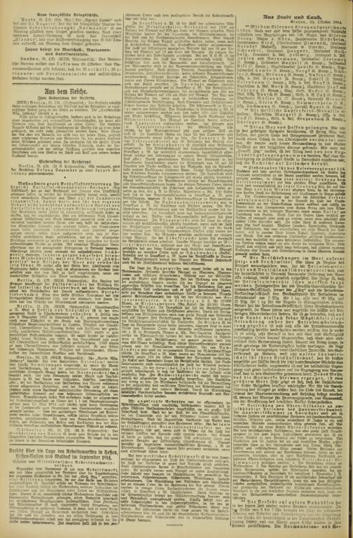 ** Die Hessische Tapferkeits-Medaille erhielten: Vizefeldw. Marge lf (5. Komp.), Uff*, t». Res. Sack (7. Kong,.stz Gefr. d. Res. Kinzenbach (8. Komp.), Düringer f6. Komp.).