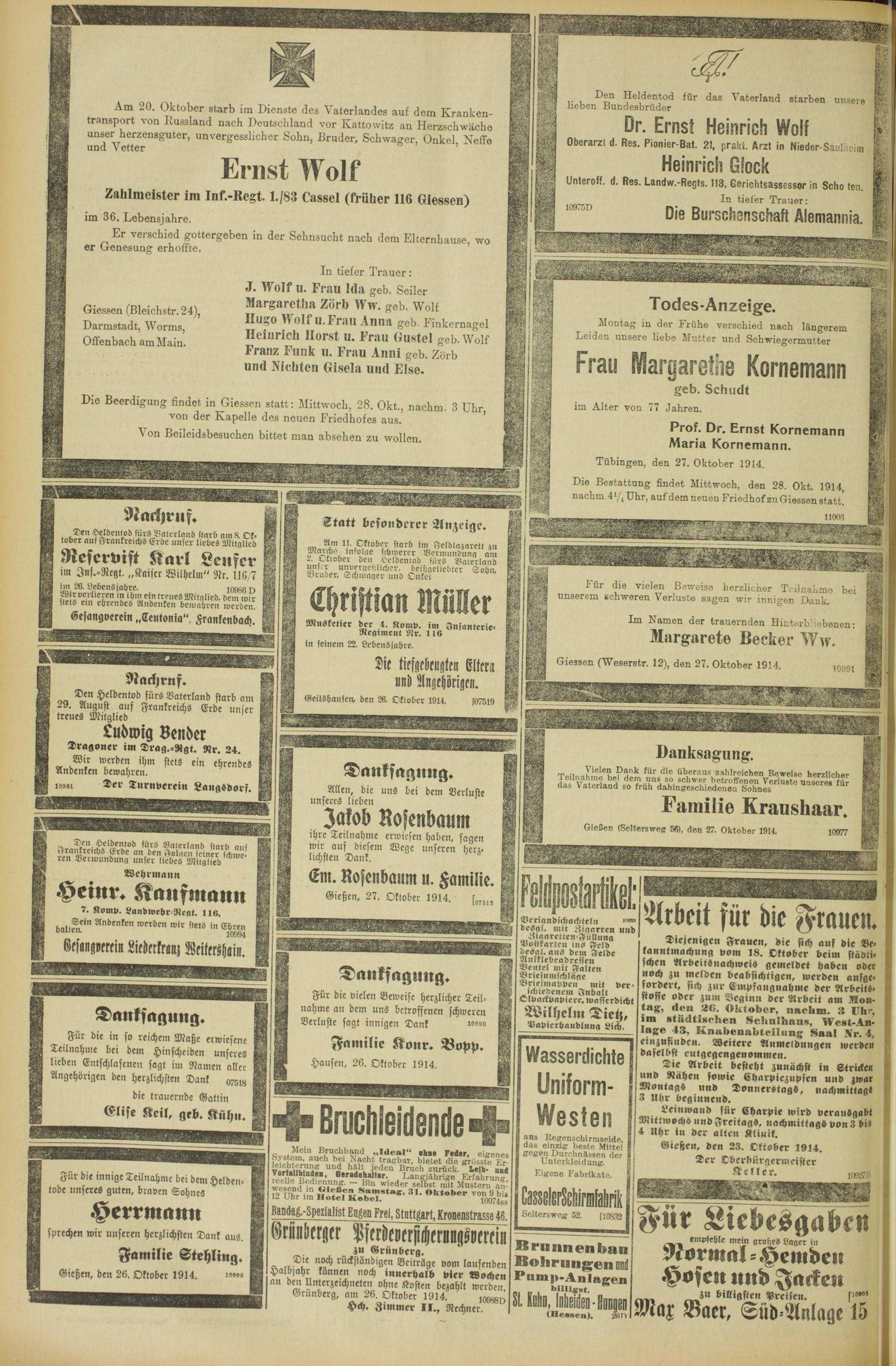 Gießen (Seltersweg 56), den 27. Oktober 1914.