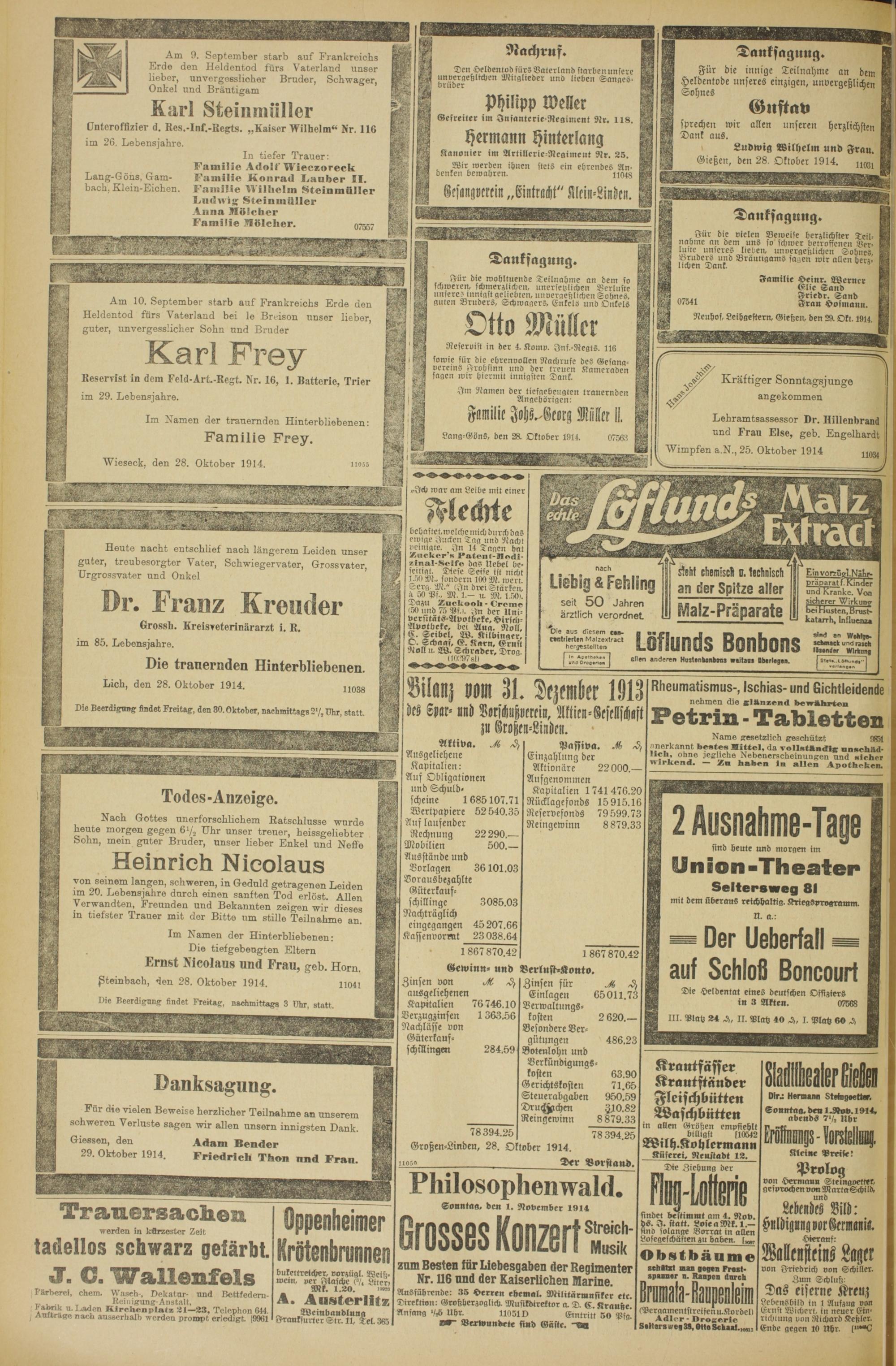 Großen-Lindeu, 28. Oktober 1914. noy»___ Der Vorstand