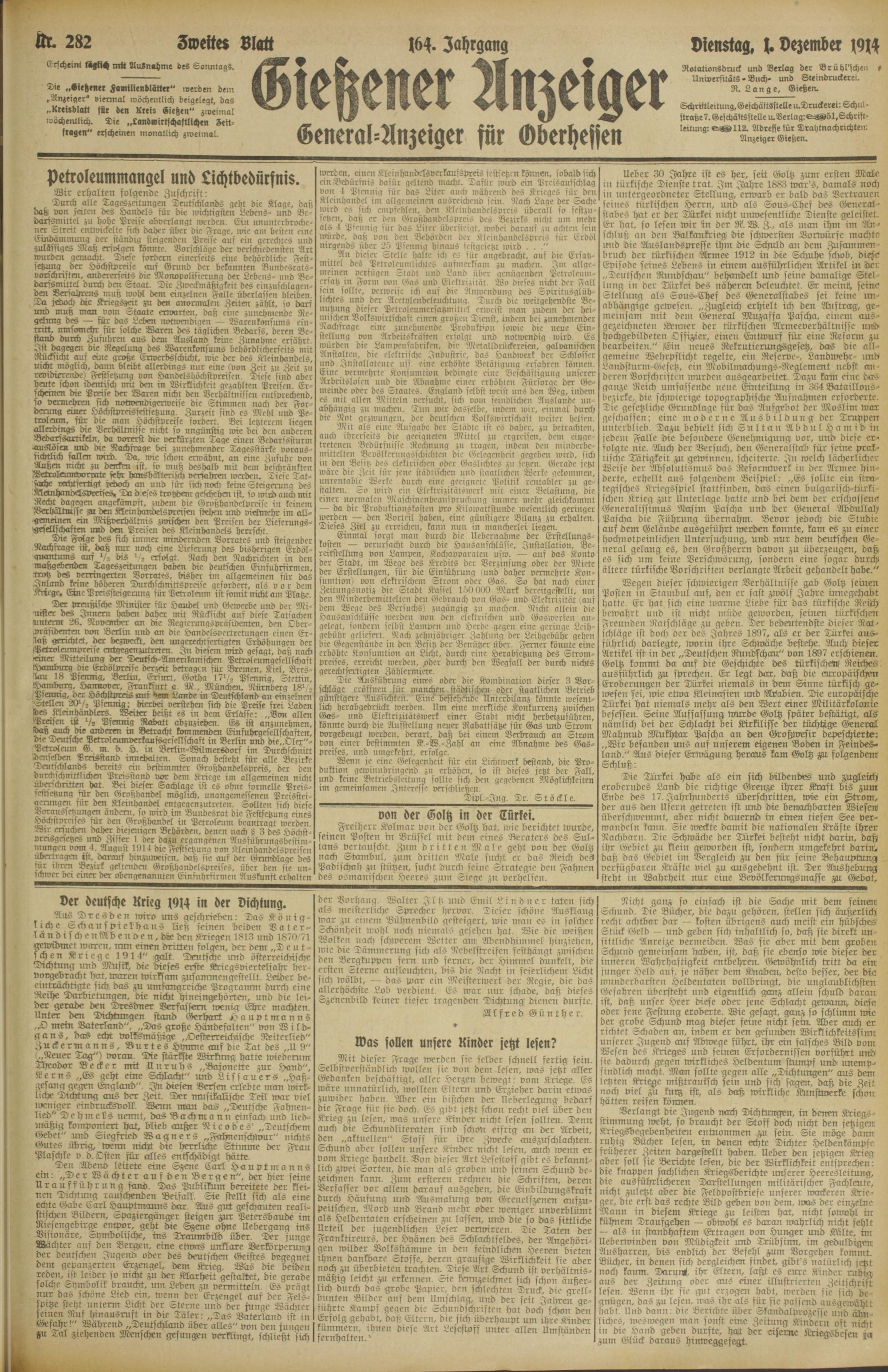 Di« „Gieße«» Familiendiätirr" werden dem .Anzeiger' viermal wöchentlich beigelegt, das „Xreirblatt für den Kreis Kietzen" zweimal wöchentlich. Die „Landwirtschaftlichen Seitsragen" erscheinen monatlich zweiinal.