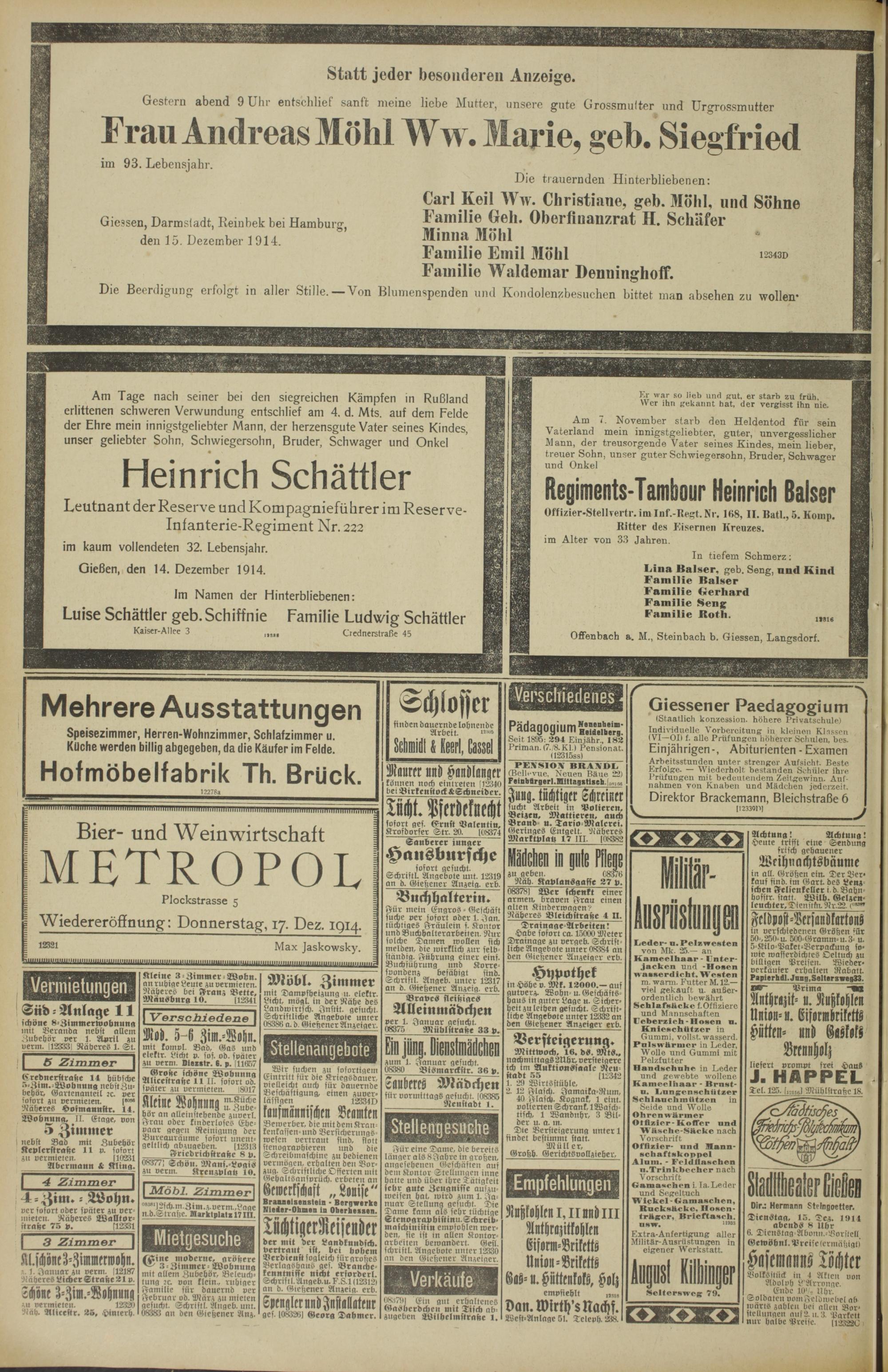 Giessen, Darmsladt, Reinbek bei Hamburg, den 15. Dezember 1914.