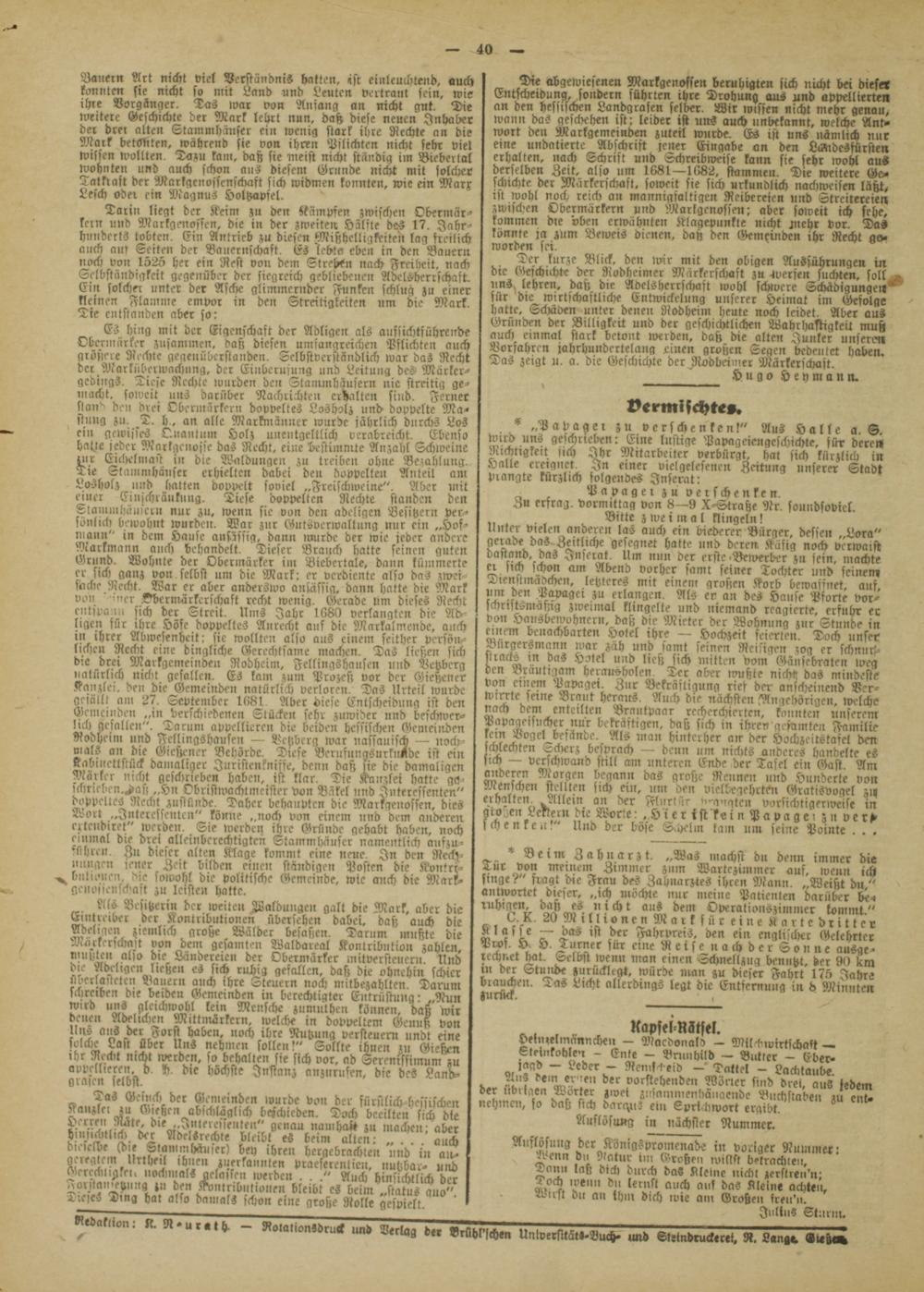 Ntbofiion: N. N. ur »«h. - Rotationsdruck und Verlag der Brühl',chen Univ-rsitätd-Buch- und Sletndruckerei, R. Lan,r Gieße»