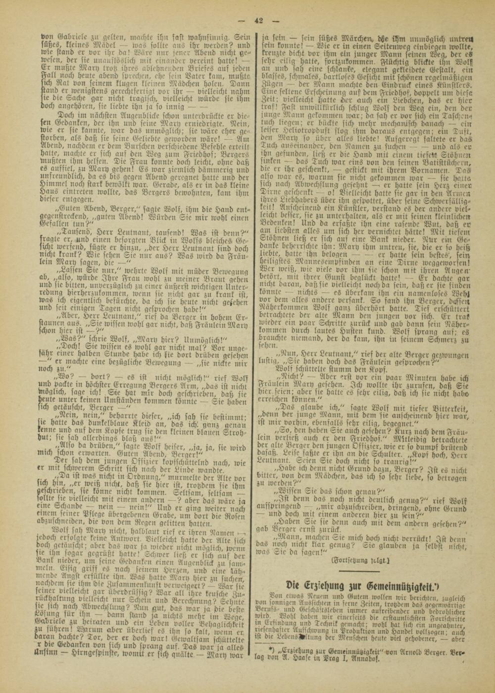*) „Erziehung zur Gemeinnützigkeit" von Arnold Berger. Verlag von A. Haasc in Prag I, Annabof. .