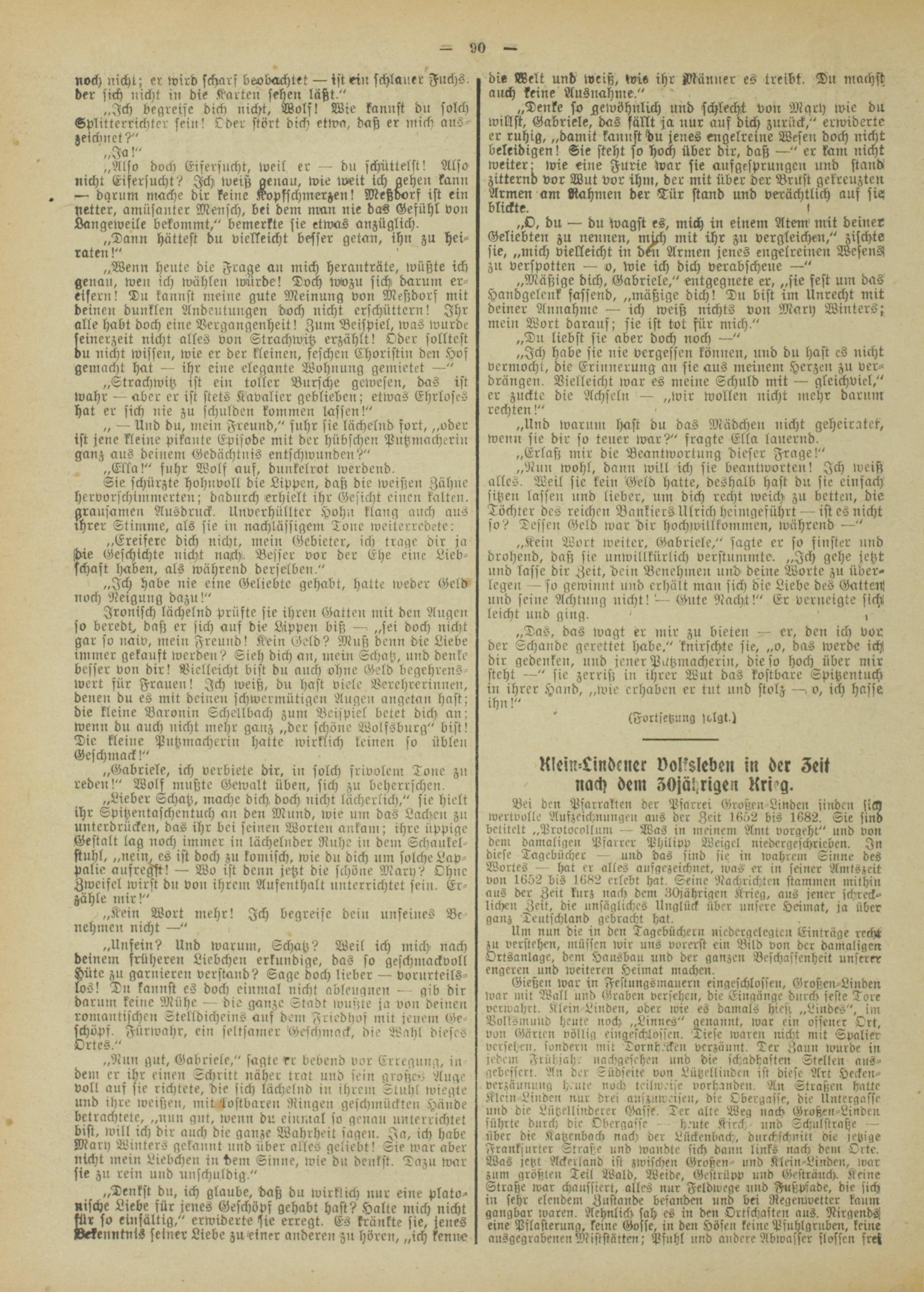 Bei den Psarralten der Psarrei Großen Linden finden sich wertvolle Auszeichnungen aus der Zeit 1652 bis 1682. Sic sind betitelt „Protocolluni — Was in meinem Amt vorgeht" und von dem damaligen Pfarrer Philivv Weigel niedcrgeschricben. In diese Tagebücher — und das sind sie in ivahrein Sinne des Wortes^ — hat er alles ausgezeichnet, was er in seiner Amtszeit von 1652 bis 1682 erlebt hat. Seine Nachrichten stammen mithin aus der Zeit kurz nach dem 80jährigen Krieg, aus jener schreck- lichen Zeit, die unsägliches Unglück über unsere Heimat, ja über ganz Deutschland gebracht hat.