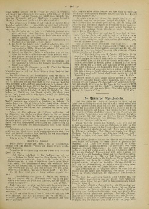 „Ich stinrine unbedingt für die Verschönerung und den inneren Ausbau der Stadt, wozu die Vergrößerung des Marktplatzes allerdings auch gehört: doch ist es mir einerlei, ob der im Wochenblatte mit A oder B bezeichnte Plan*) zuerst ausge- sührt werde. Der Stadtvorstand fange nur einstweilen damit an, das alte Schlachthaus, die alte Waage, niederrcißen und daselbst vorerst eine Anlage, eine Art Bosguet. vor dem Sckul- hausc anlegen zu lassen, Das andere kommt nach! Tr, Vix," Am 26, Sept. 1856 gab die Bürgermeisterei folgende Ant- tvort: