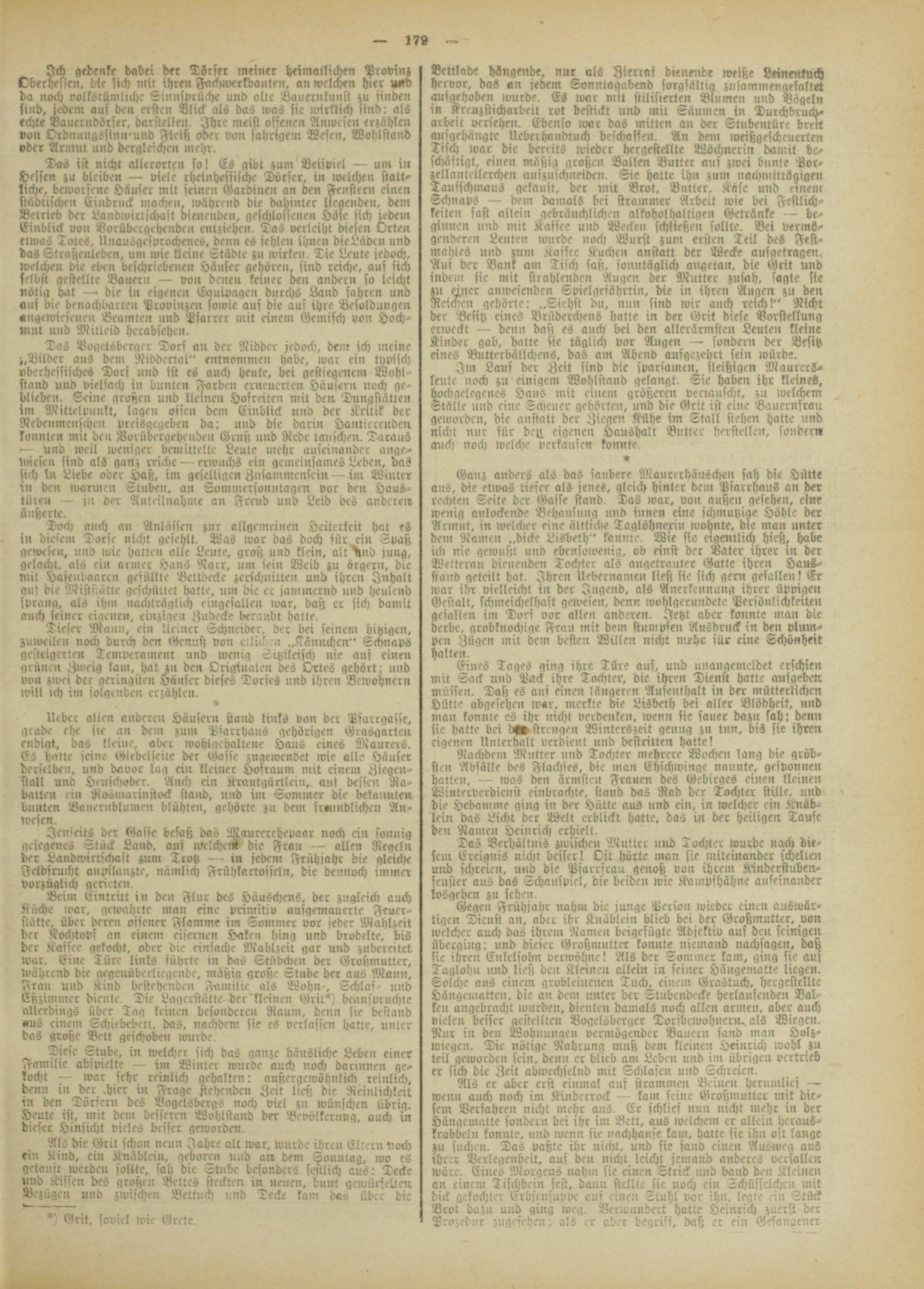 Nachdem Mutter und Tochter mehrere Wochen lang die gröbsten Abfälle des Flachses, die inan Ehichwingc nannte, gesponne» hatte», — was den ärmsten Frauen des Gebirges einen lleinen Winterverdicnst cinbrachle, stand das Rad der Tochter stille, und die Hebamme ging in der Hütte auS und ei», in welcher ein Knäblein das Licht der Welt erblickt hatte, das in der heiligen Taufe den Nanien Heinrich erhielt.
