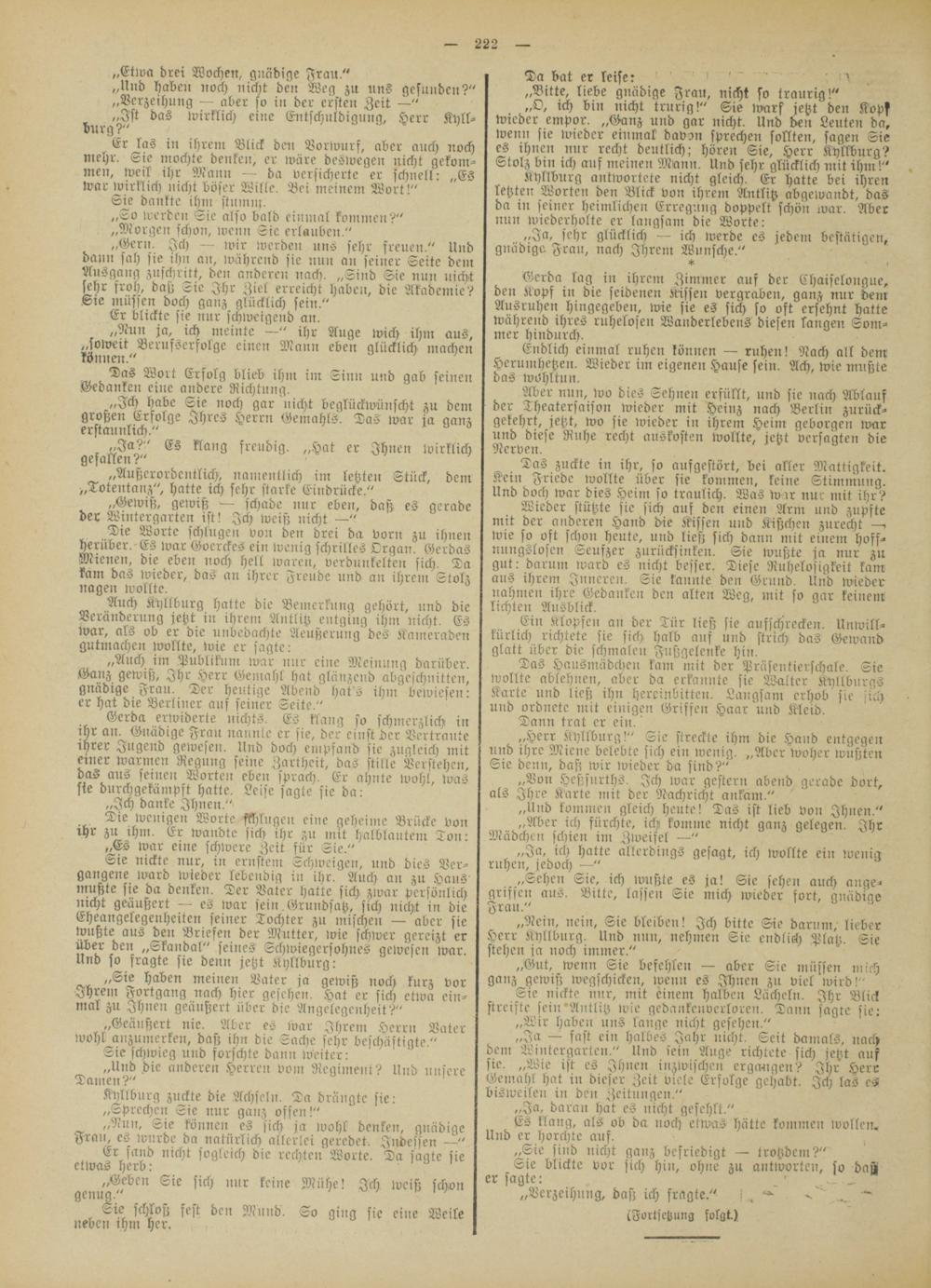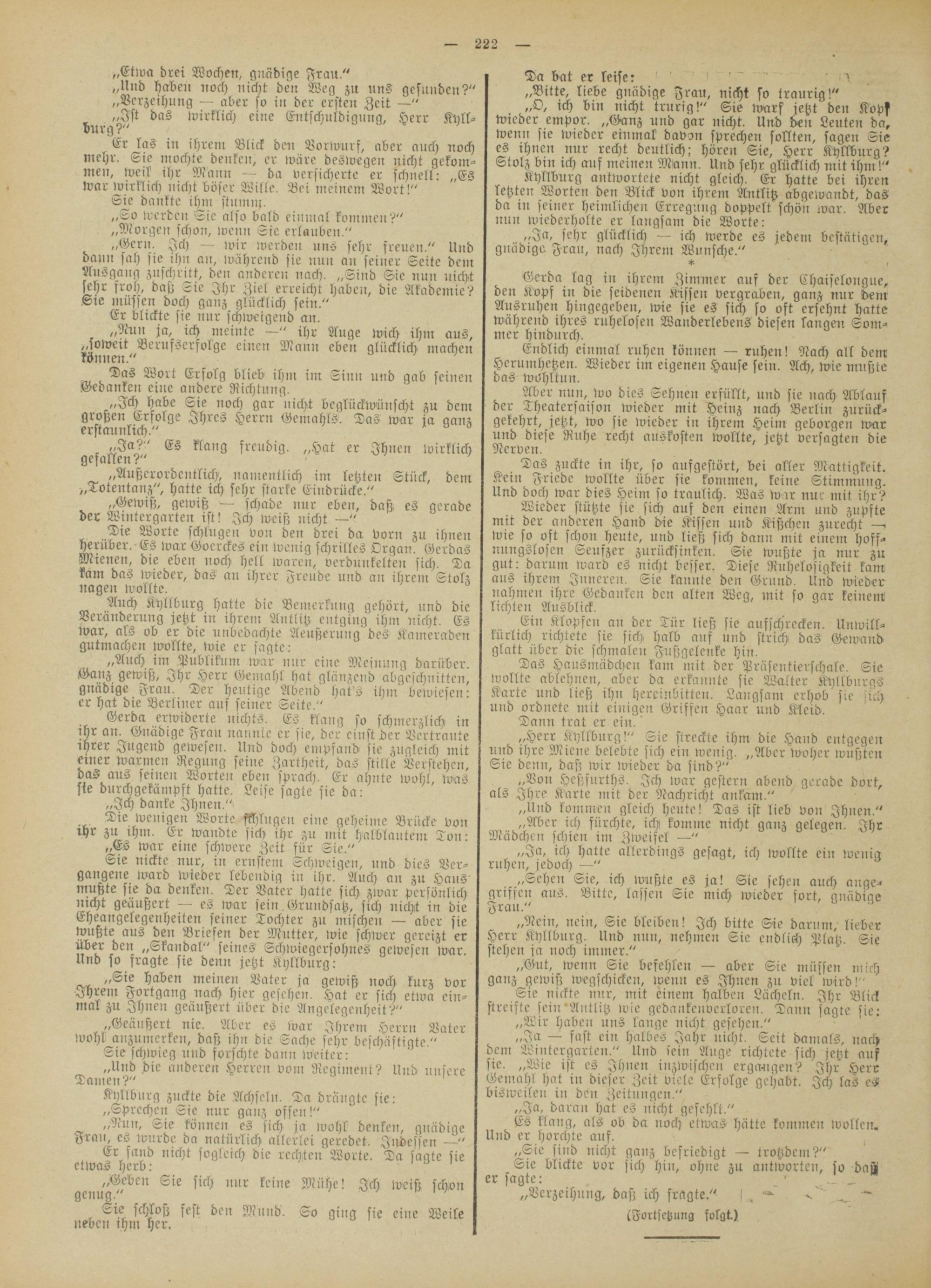 „Ich habe Sie noch gar nicht beglückwünscht zu dem großen Erfolge Ihres Herrn Gemahls. Das war ja ganz erstaunlich."