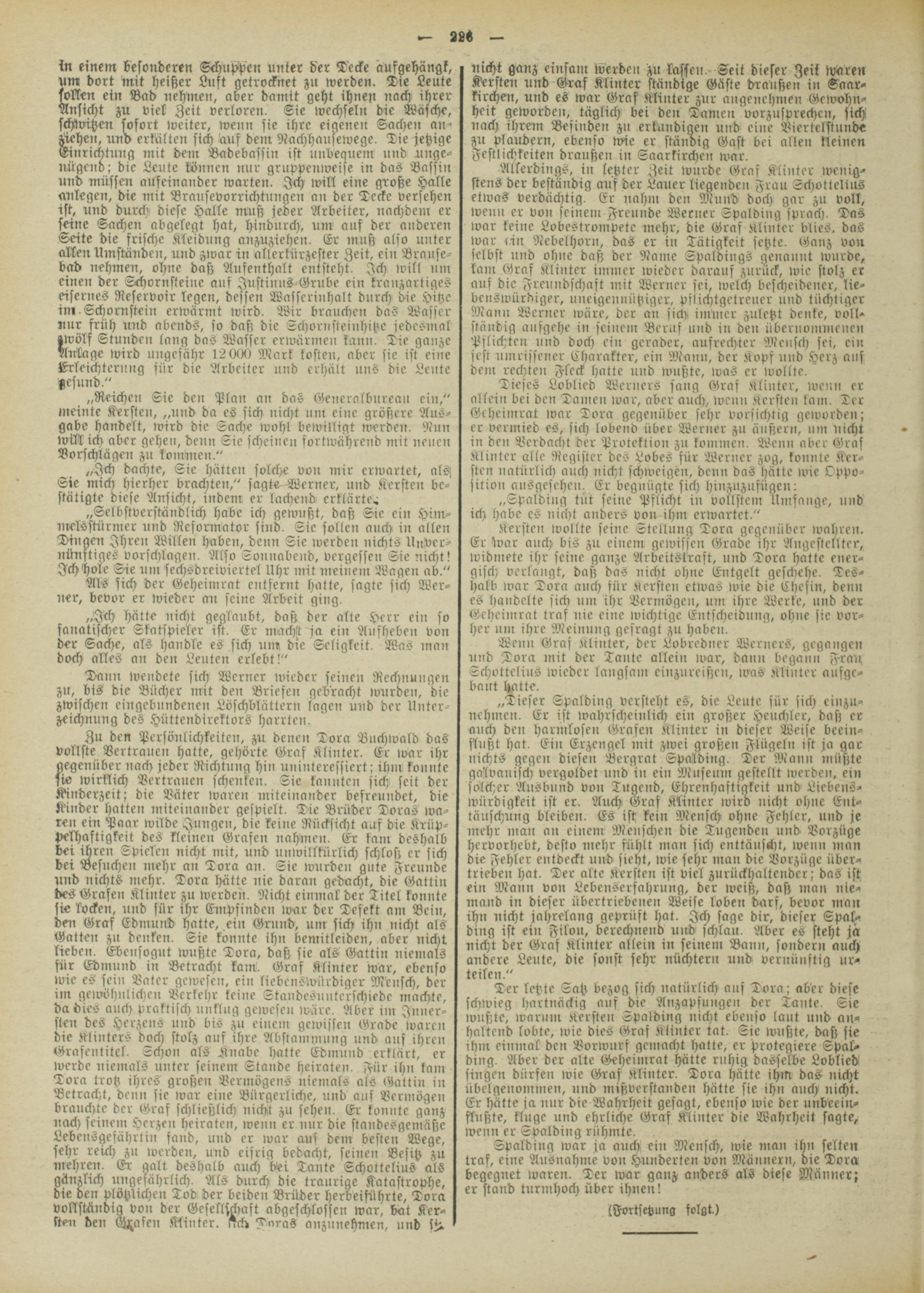 Dann tvendete sich Werner wieder seinen Rechnungen zu, bis die Bücher mit de» Briefen gebracht wurde», die zwischen eingebundenen Löschblättern lagen und der Unterzeichnung des Hüttendirektors harrten.