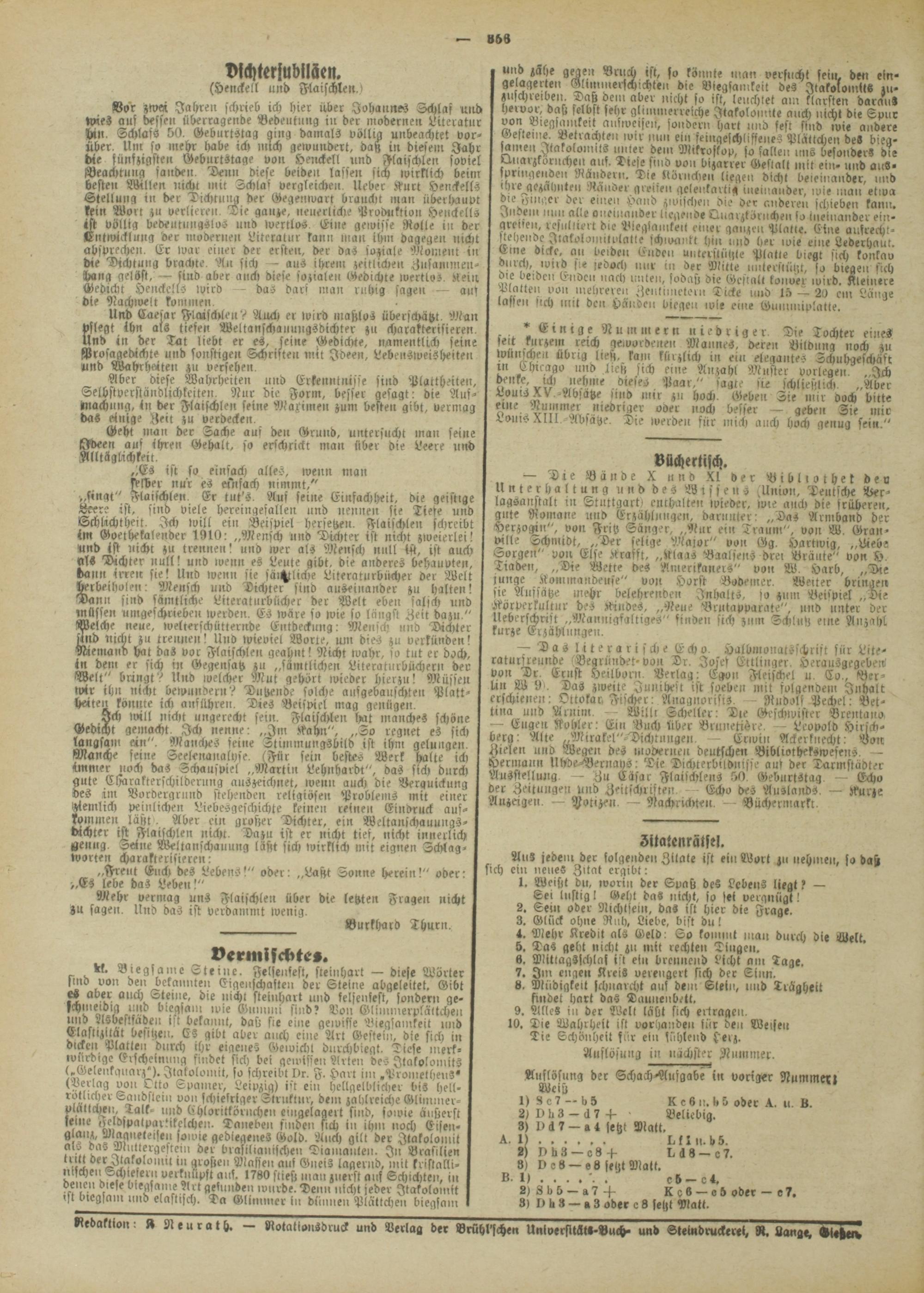 Redaktion» !4 Neurath. — Rotatlousdruck und Verlag der Brühl'schen Untversitäti-Buch- und Stelndruckerel, R, Lange, Aleßettz