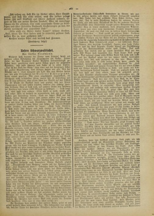 Glühend hoch brannte die Sonne vom Himmel herab aus Unseren ersten Abkochplatz bei Ziegelhausen am Neckar. Unsere Zelte, die das Regiment Kaiser Wilhelm liebenswürdigst geliehen lfatte, gemährten einen guten Schutz gegen die glüheirden Strahle», und bald schmorte und kochte es in allen Töpfen. „Das ist der Duft der Kückie" sang einer aus der hungrigen Schar mit grober Begeisterung. Und Hunger hatten wir alle. Mit der Abfahrt am l. Juni morgens um 4,56 Uhr von Gießen hatten wir, mit zehn Teilnehmern des GießenerP ädagogiums, kaum etwas gegessen. Mit einer ungestümen Fugcndkrast, die überhauvt nicht erschöpsbar schien, waren war in Heidelberg aus dem D-Zug geklettert, aber allein schon der Marsch auf das Schloß "mit 40 Pfund im Rucksack hatte uns gezeigt, daß wir keinen Spaziergang vor uns haben würden, sondern eine tüchtige svort- liche Leistung. Galt cs doch noch, aus unserer Fahrt den Feldberg bei Freiburg mit seinen 1500 Meiern zu besteigen. — Doch langr- sam, eins nach dem andern. Essen stärkt ja wohl, macht aber auch träge. Wdr es deshalb zu verwundern, daß wir mit einem Nachen gen Heidelberg fuhren. Noch ein letzter Blick auf das Schloß, Lessen Anblick immer und immer wieder das Herz mtt Freude füllt, ging es unter frohen Schesfelliedcrn zur Bahn und dann mit dem D-Zug nach Straßburg. Die Schwarzwaldbcrge zu uncsrcr Linken wurden höher und höher, die Hornis-Gründe grüßte herüber, als wollte sie sagen: „Seht frohe Gesellen, so hoch müßt Ihr steigen und noch einmal die Hälfte höher, dann hobt Ihr meinen größeren Bruder bei Frciburg bezwungen." Doch das konnte uns gar nicht sonderlich imponieren. Ter Mensch ist ja dann immer am leichtesten bereit, sich seiner Leistungen zu rühmen, wenn er nichts zu Icisten hat. Als wir am Bahnhof in Straßburg erfuhren, daß unser Quartier (Kaserne d. Fußart.-Regts. Nr. 10) noch 5 4 Stunden entfernt lag, wurden selbstverständlich aller Gesichter lang und länger Glücklich angckouimcn, ging es mit derselben Selbstverständlichkeit ans — Essen. Wie um eine Ausrede verlegen, tvenn es gilt, sich selbst zu verteidigen, behauptete man allgemein, der Ballast im Rucksack müßte entfernt werden und wäre, da dies die einzige Möglichkeit, im Magen zu verstauen. Daß uns trotz dieser ausgiebigen Krastzufuhr am ersten Tage unserer Fahrt und einer erauickenden Nachtruhe auf Slroh- säcken, die nur einmal durch eine leider erfolglose Jagd auf Mäuse unterbrock>eii wurde, am Morgen des nächsten Tages die 380 Stufen zur Plattform des Münsters leichter geworden wären, läßt sich kaum behaupten. Tie Achtung vor Meister Erwins! Werk wuchs mit jeder neuen Treppenstufe. Doch ein herrlicher Rundblick pon oben belohnte uns und nicht ohne besondere Anerkennung gedachten wir Goethes, nicht weil er mit solcher Begeisterung von dem auch für uns herrlichen Denkmal gotischer Baukunst geschrieben hat, sondern — Poesie und Prosa! — weil er bei seinem Bemühen, schwindelfrei zu werden, von seinem luftigen Standort nicht abgestürzt war. — Doch, wir durften nicht nur bewundern, wir wurden vielmehr auch bewundert. Einige Ausrufe zeigten das. „Deutschlands letzte Rettung" wurde mit der Antwort guit- tiert: „Und Frankreichs Ende!" Scheinbar hatte der Französling, dessen Gehege seiner nicht mal guten Zähne das Wort entflohen war, genug von unserer Antwort: sein, höflich gesagt, nicht sehr geistreickies Gesicht und schneller Abgang bewiesen das. „La guene civile" sagte ein anderer. Wieso >vir den Bürgerkrieg darstellten, war uns zunächst wenig klar. Als uns dann aber eine, imc es schien, den gebildeten Ständen angehörige Dame fragte, ob wir denn unsere schwarz-rot-gelbc Jahne — toir hatten unsere Tourenfahne mit den Farben des Pädagogiums, die uns vergangenes Jahr auf unserer Rheintour auch begleitete, wieder mitgenommen — so öffentlich tragen dürsten, das seien doch die Revolulions- sarben von 48, da begann es uns zu dämmern. Stille Heiterkeit und umso größere Freude an den geliebten Farben waren das Resultat der naiven Anfrage. Im allgemeinen trafen unö in Straßburp wenige freundliche Blicke. Tie Wackesgelchichte von Labern hat scheinbar das niedere Volk nicht gerade für Deutschland begeistert. Oder war es etwa schon vorher so>