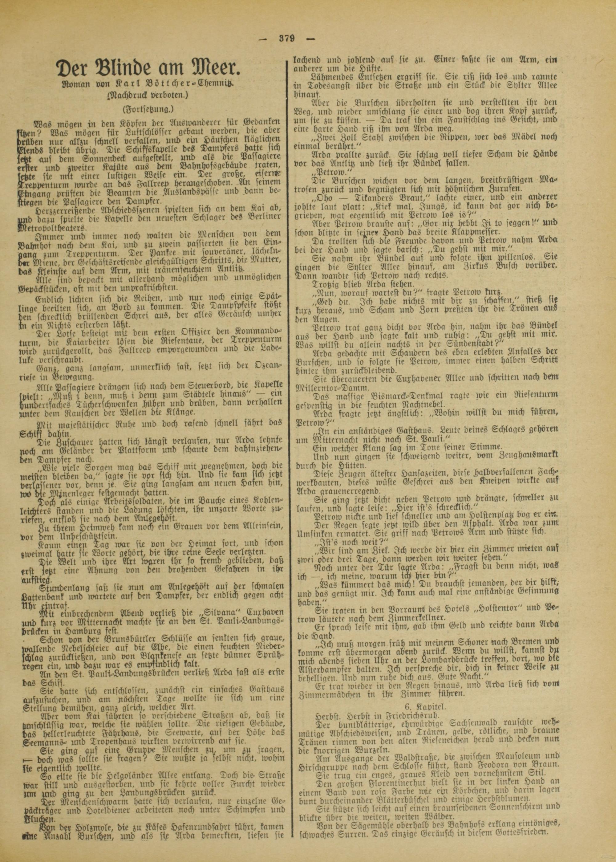 Mer vom Kai führten so verschiedene Straßen ab, daß sie lunschlüssig war, welche sie wählen jollte. Die riesigen Gebäude, das hellerleuchtete Fährhaus, die Seewarte, auf der Höhe das Seemanns- rmd Tropenhaus «virkten verwirrend aus sie.